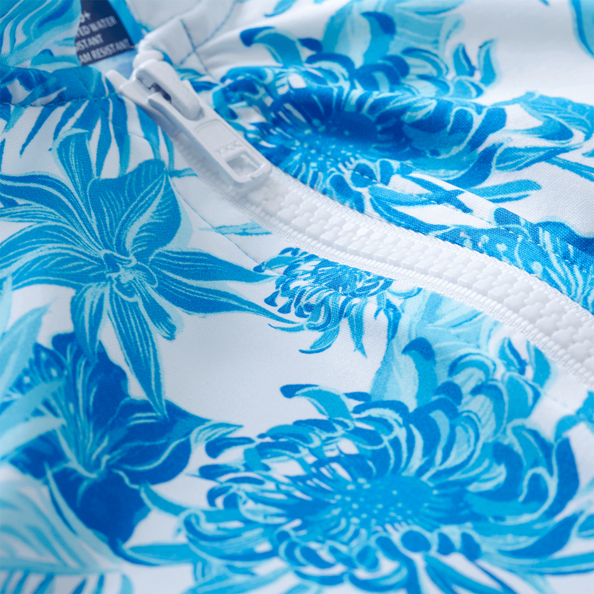 Uzun kollu ve kolay giyilip çıkarılabilen fermuarlı ön kısmıyla maksimum UV koruması sağlayan çocuk tişörtü.