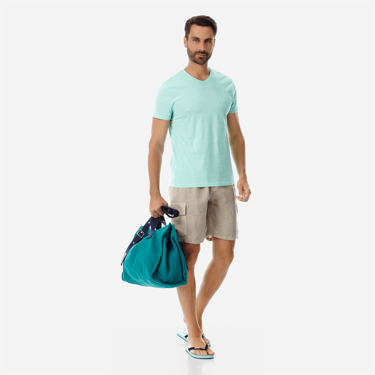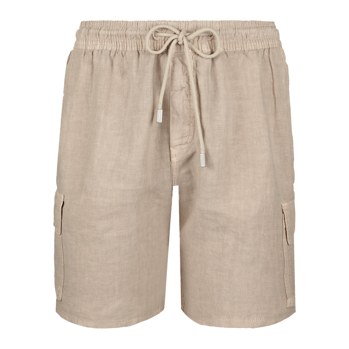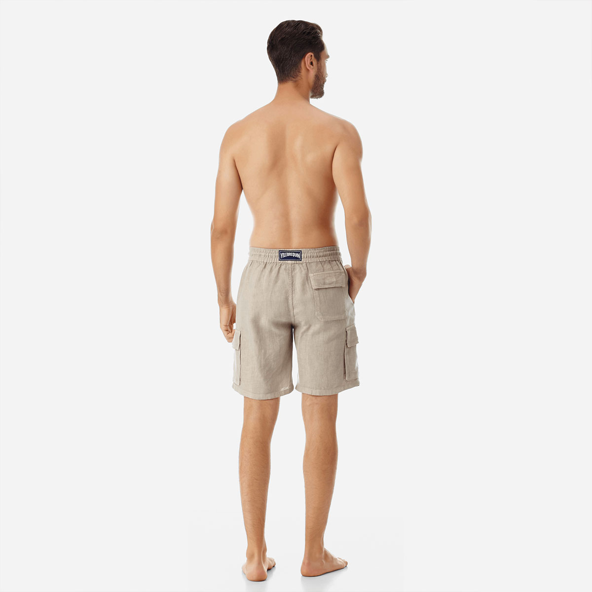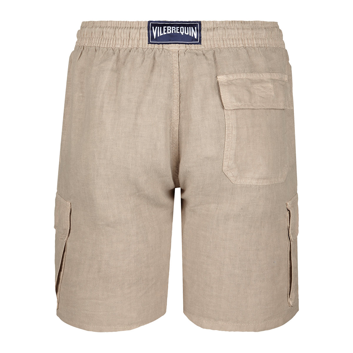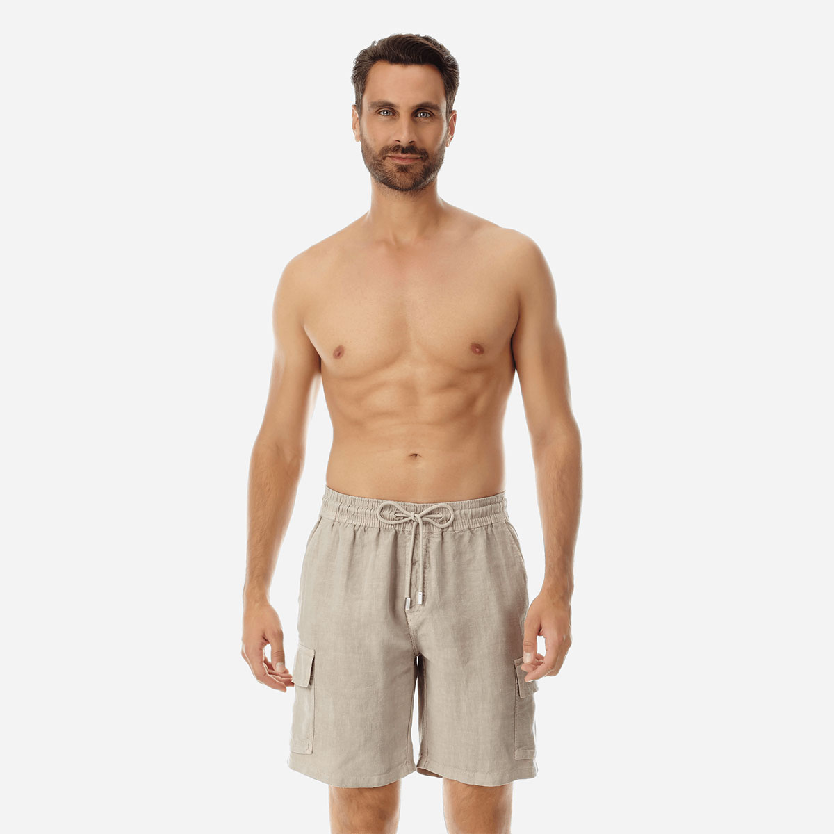 Esnek ve rahat keten kumaştan üretilen, zamansız ve rahat erkek bermuda şortları, Vilebrequin koleksiyonunun önemli bir parçasıdır.