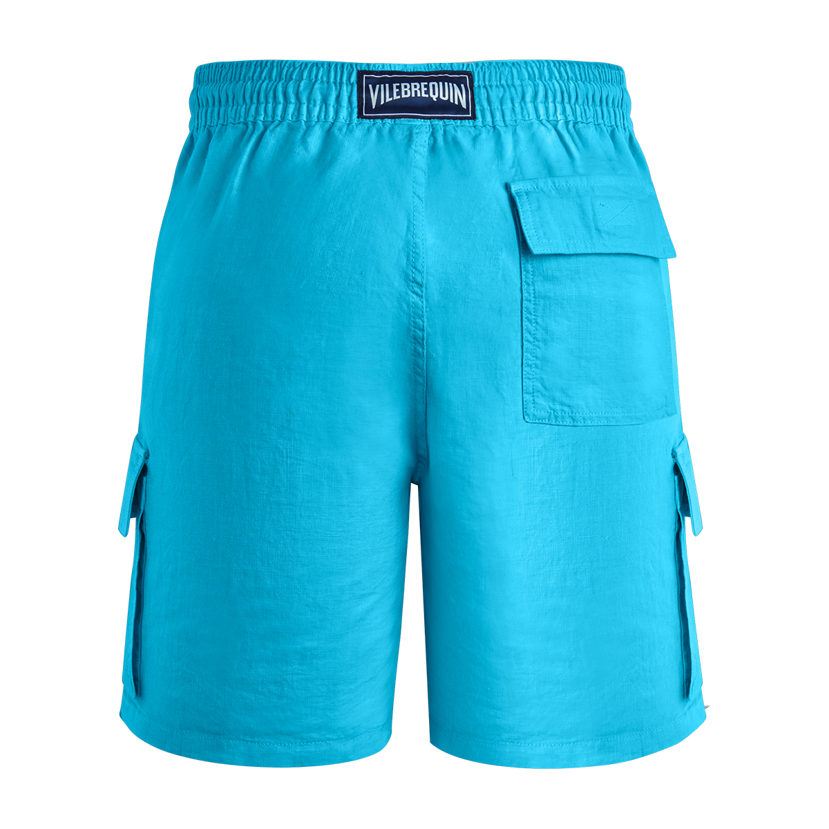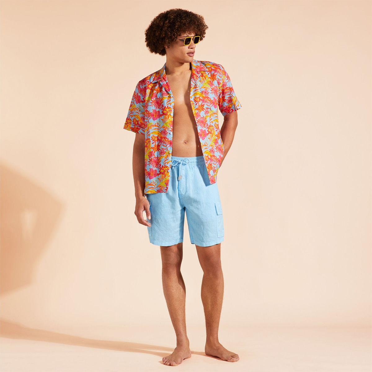 Esnek ve rahat keten kumaştan üretilen, zamansız ve rahat Baie erkek bermuda şortları, Vilebrequin koleksiyonunun önemli bir parçasıdır.
