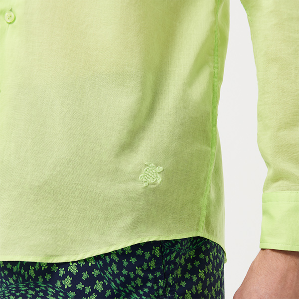 Yumuşak ve hafif pamuklu kumaşı ile Vilebrequin Caracal gömlek her stile uygundur. Zamansız bir stil ve mutlak konfor sağlayan bu uzun kollu gömlek önündeki aynı tonda işlemeli ikonik kaplumbağa logosuyla dikkat çekiyor.