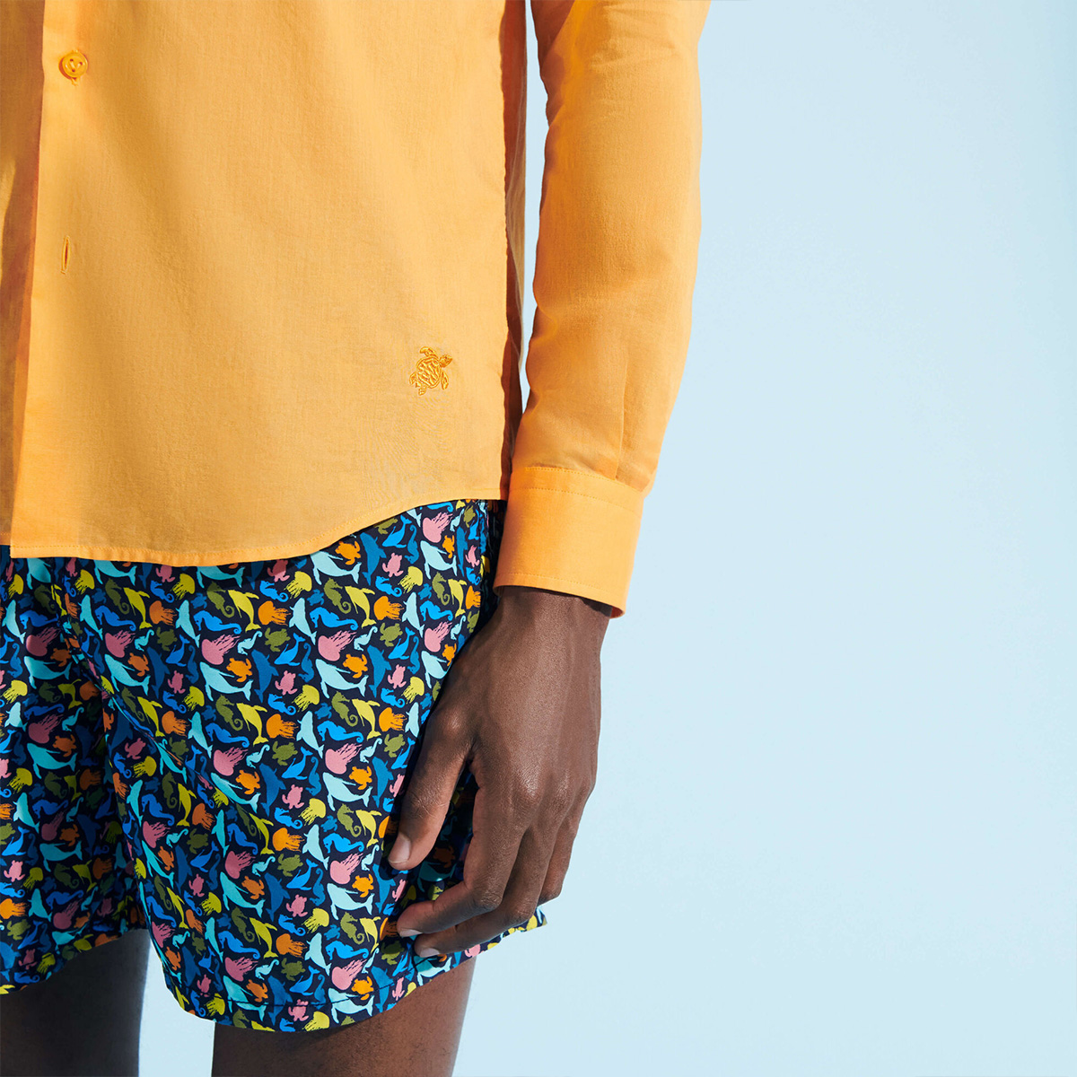 Yumuşak ve hafif pamuklu kumaşı ile Unisex Vilebrequin Caracal gömlek her stile uygundur. Zamansız bir stil ve mutlak konfor sağlayan bu uzun kollu gömlek, önünde aynı tonda işlemeli ikonik kaplumbağa logosuyla dikkat çekiyor.