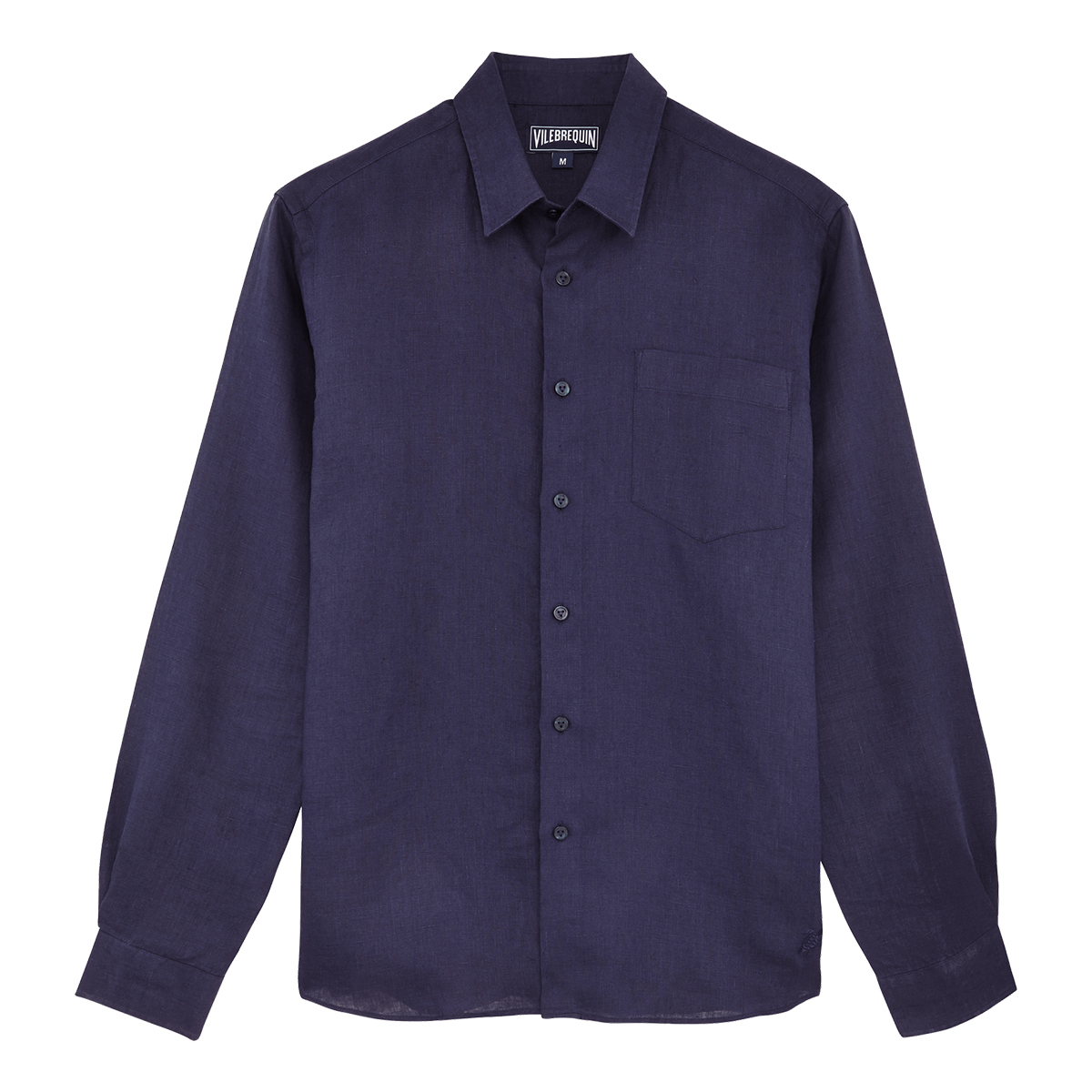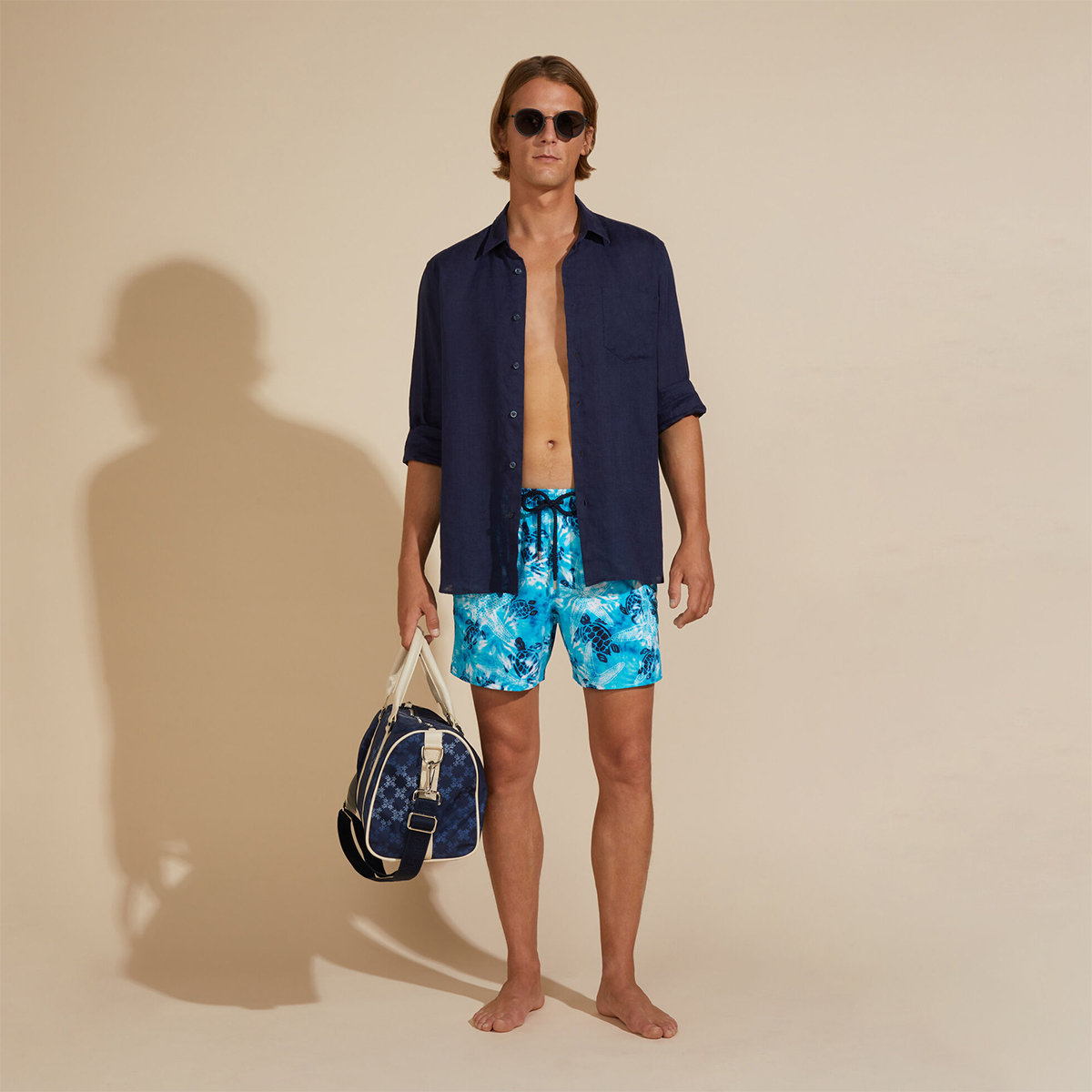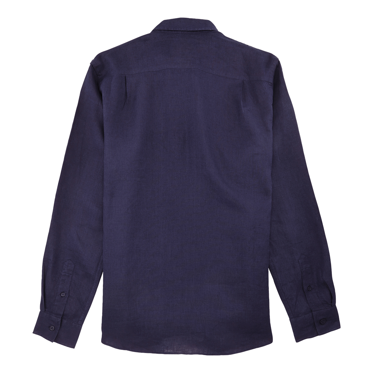 Caroubis uzun kollu keten gömlekler, Vilebrequin’in St Tropez’den ilham alan stilini klasik, sade bir kesimle gösteriyor. Yumuşak keten kumaştan yapılmış bu gömlek, eteğinde aynı tonda işlenmiş ikonik kaplumbağa logosu ile dikkat çekiyor.