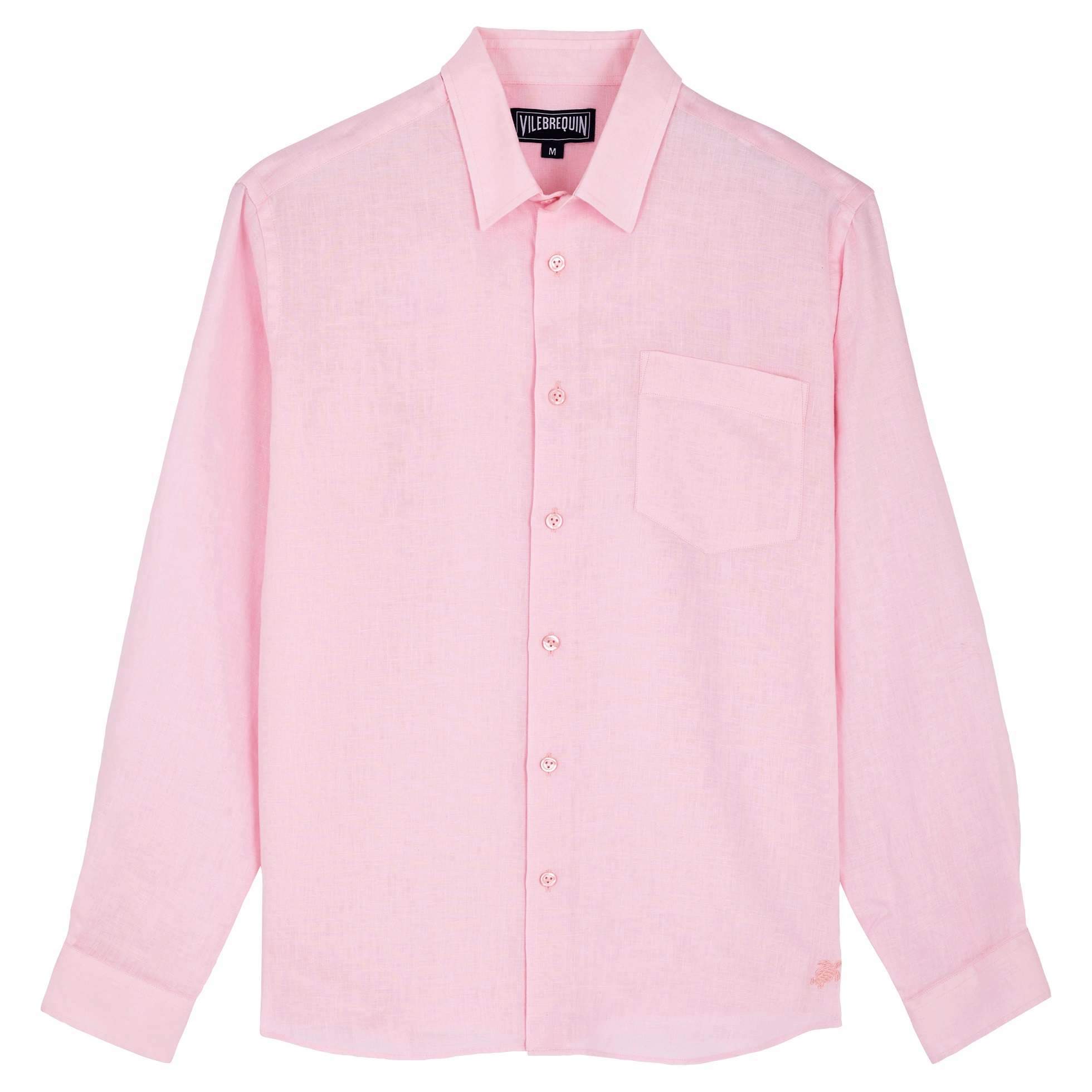 Caroubis uzun kollu keten gömlekler, Vilebrequin’in St Tropez’den ilham alan stilini klasik, sade bir kesimle gösteriyor. Yumuşak keten kumaştan yapılmış bu gömlek, eteğinde aynı tonda işlenmiş ikonik kaplumbağa logosu ile dikkat çekiyor.
