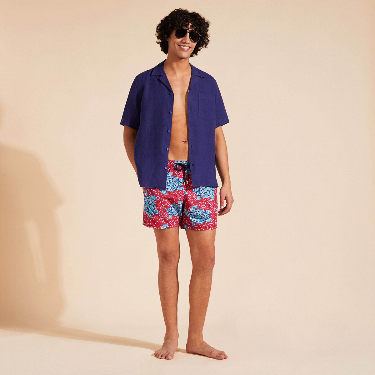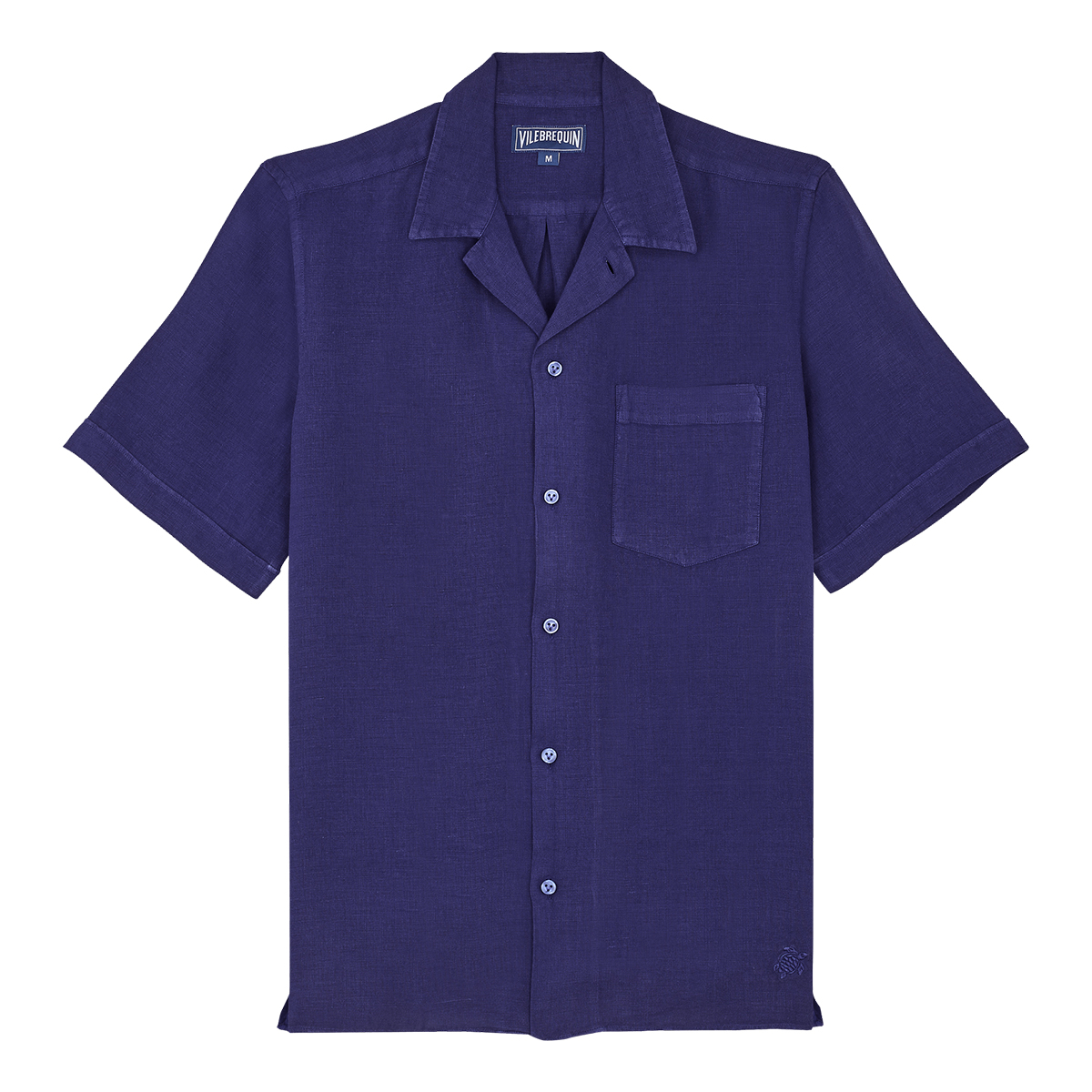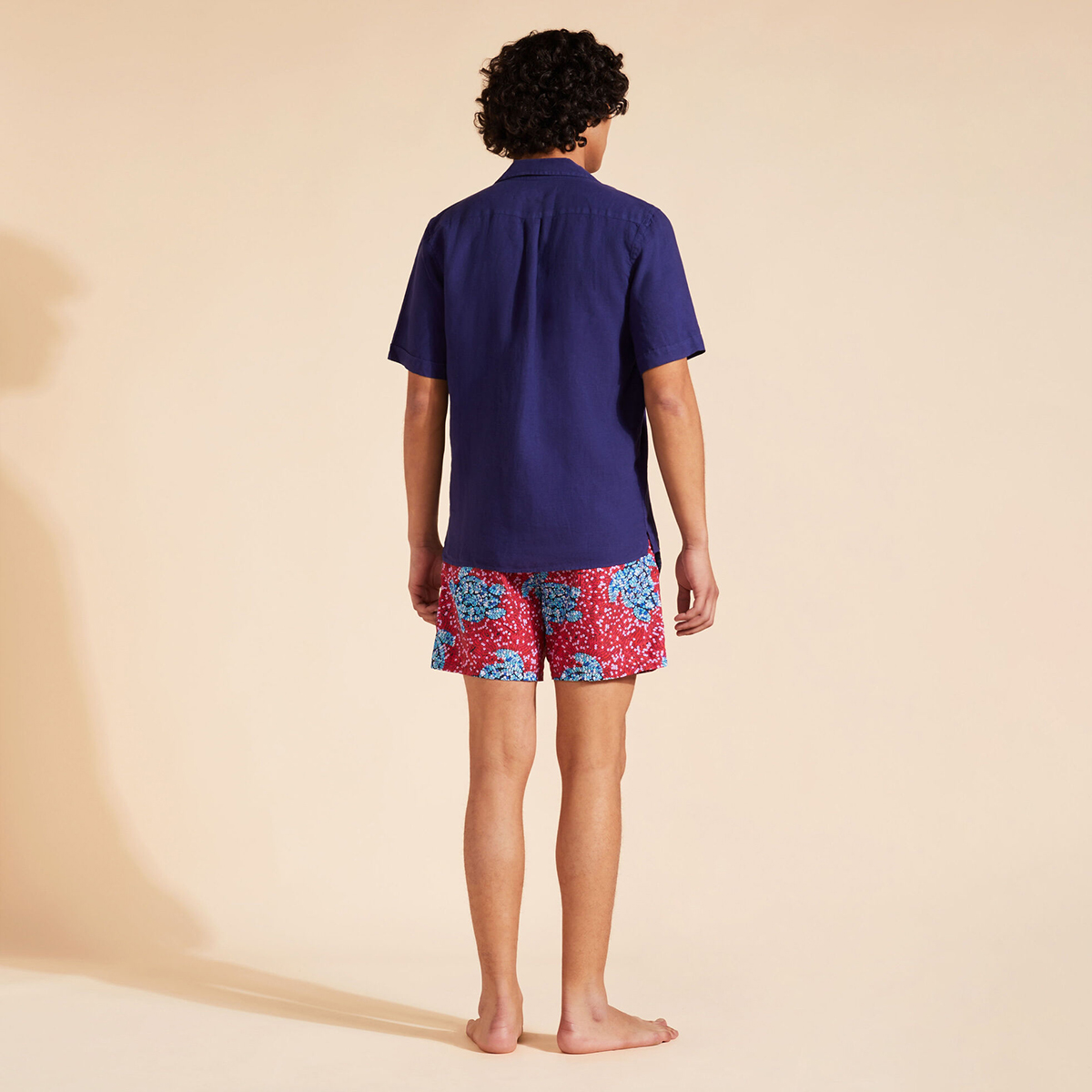 Erkekler için manşetleri kıvrık, kısa kollu bowling gömleği