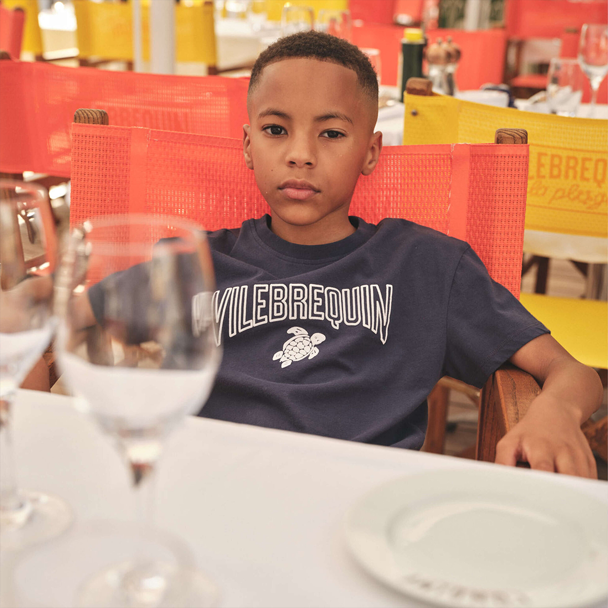 Plajda geçireceğiniz rahat günler için, rahat organik pamuklu jarseden üretilen bu çocuk tişörtünün ön kısmında göz alıcı bir baskı bulunuyor. Bu ürün koleksiyondaki şortlar ile mükemmel şekilde kombinlenebilir.