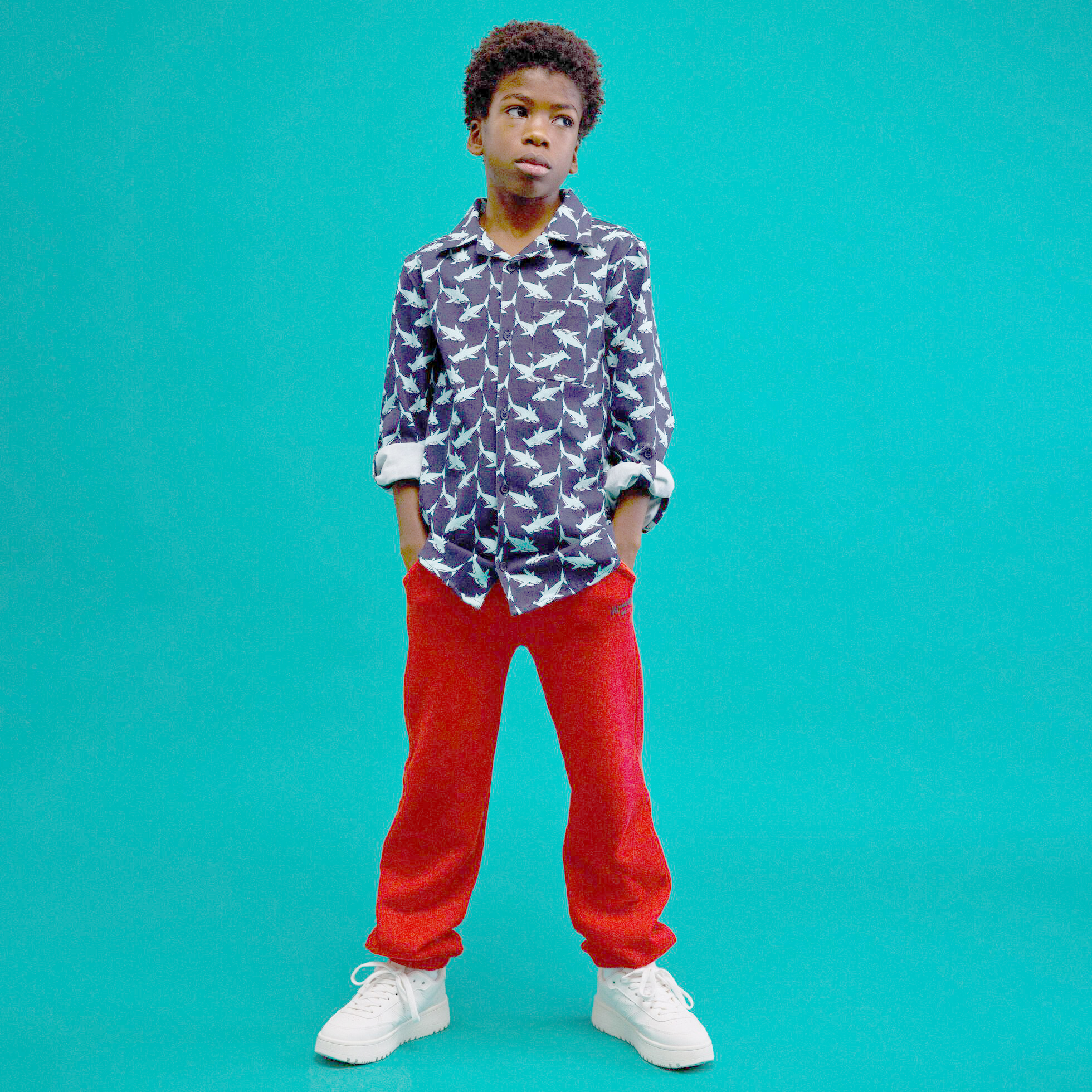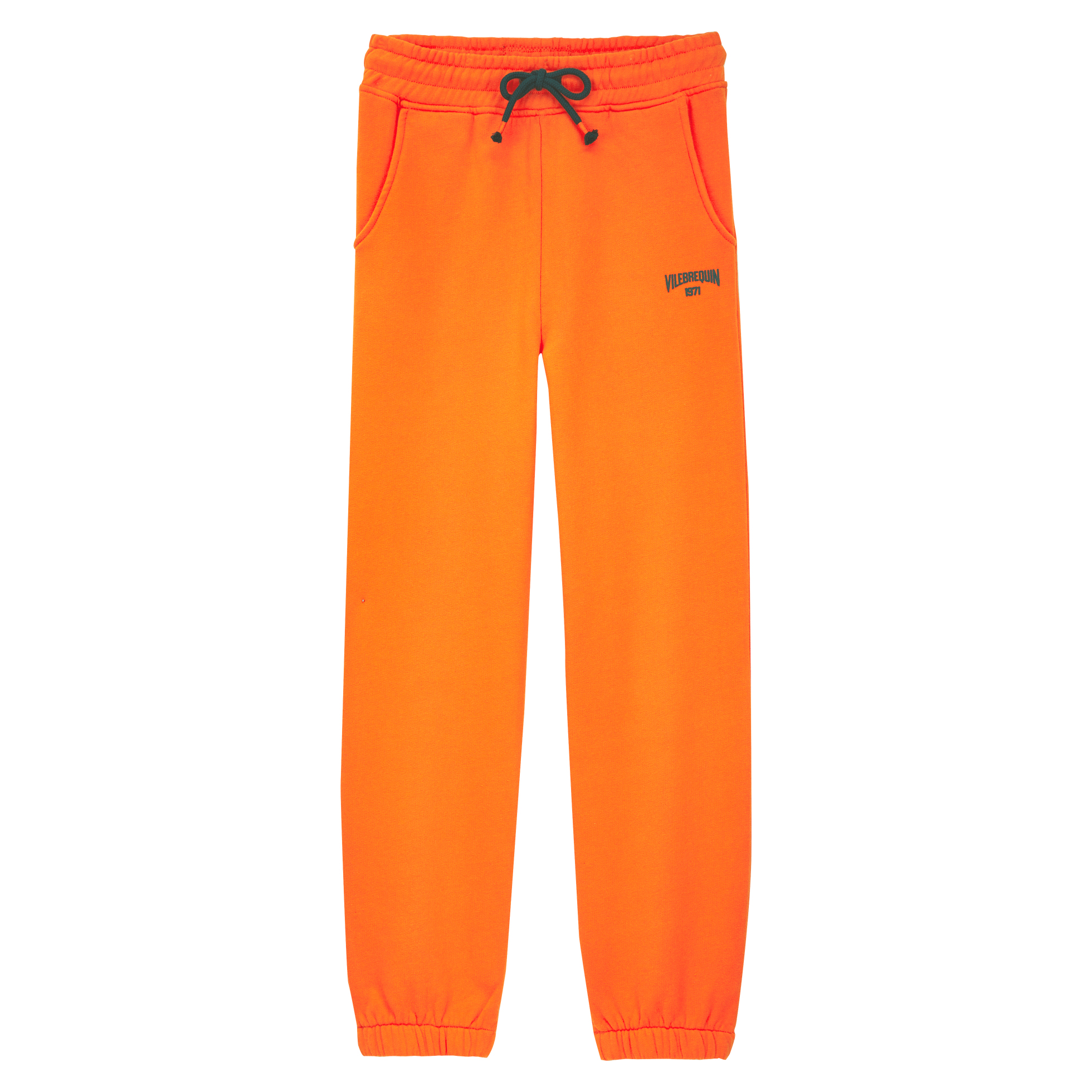 Vintage spor giyim: Retro Amerikan üniversite görünümünden ilham alan sade ve ikonik Vilebrequin logosuyla süslenmiş çocuk eşofman altı