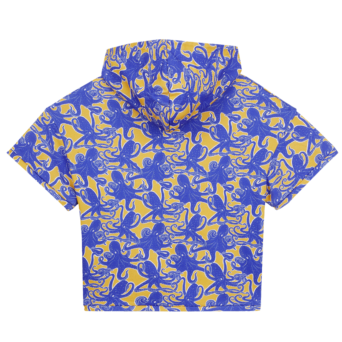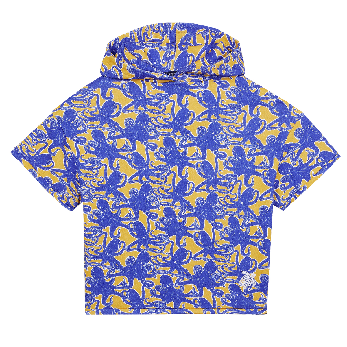 Ahtapotlarla süslenmiş, çok yönlü, dikkat çekici bu kapüşonlu tişört şortlar veya yaz pantolonları için mükemmel bir tamamlayıcıdır.