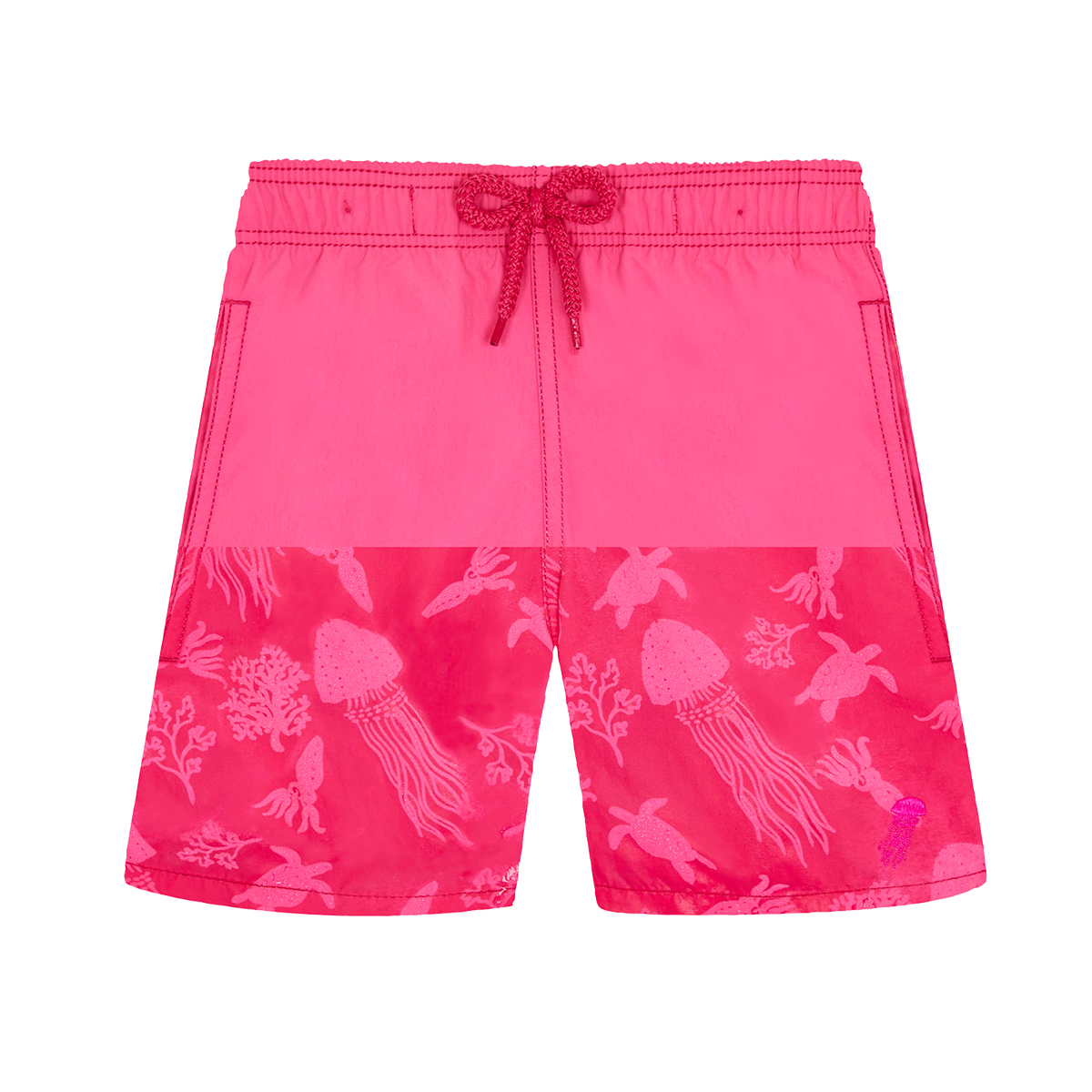 Bu Water-Reactive erkek çocuk mayolarının üzerindeki su desenleri saklambaç oynuyor çünkü ıslandığında ortaya çıkıyorlar ve kuruduğunda kayboluyorlar. Kuruduğunda düz renk olan bu mayolar, kumaş suyla temas eder etmez neşeli desenlerle kaplanır. Elastik kemer