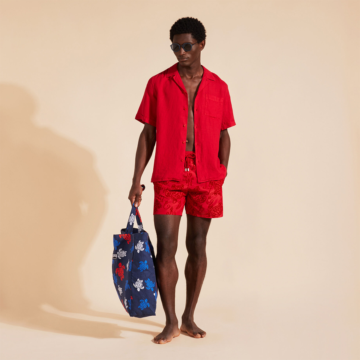 Bu çok hafif kumaşı ile dikkat çeken mayo, katlanarak arka cebine sığıyor ve üzerinde kauçuk Vilebrequin logosu yer alan bir keseye dönüşebiliyor.