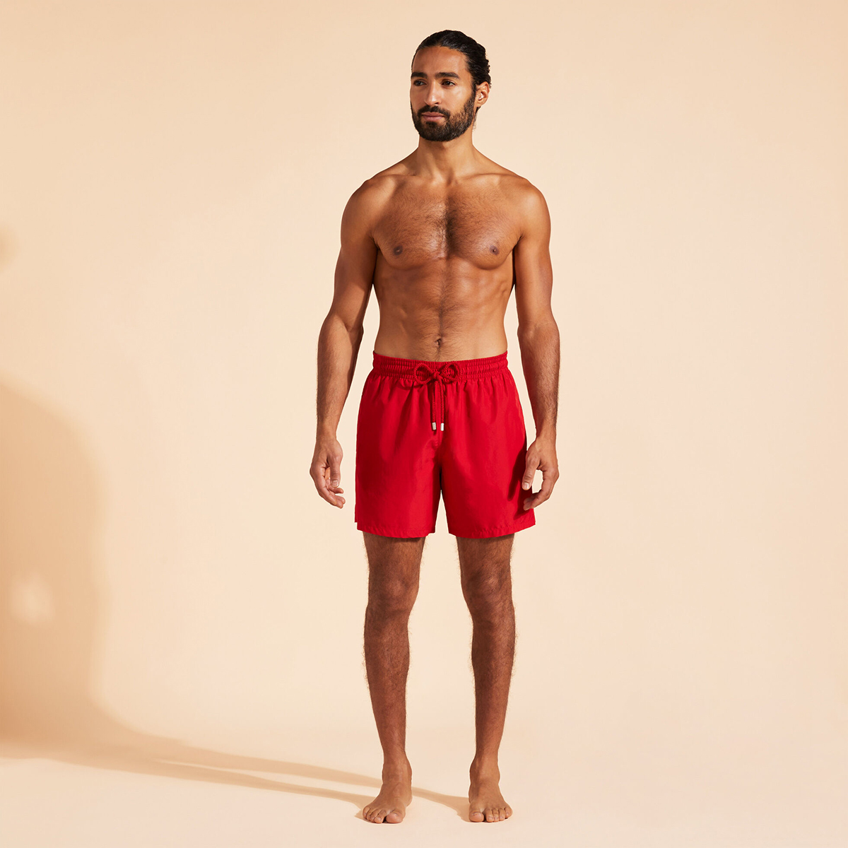 Bu çok hafif kumaşı ile dikkat çeken mayo, katlanarak arka cebine sığıyor ve üzerinde kauçuk Vilebrequin logosu yer alan bir keseye dönüşebiliyor.