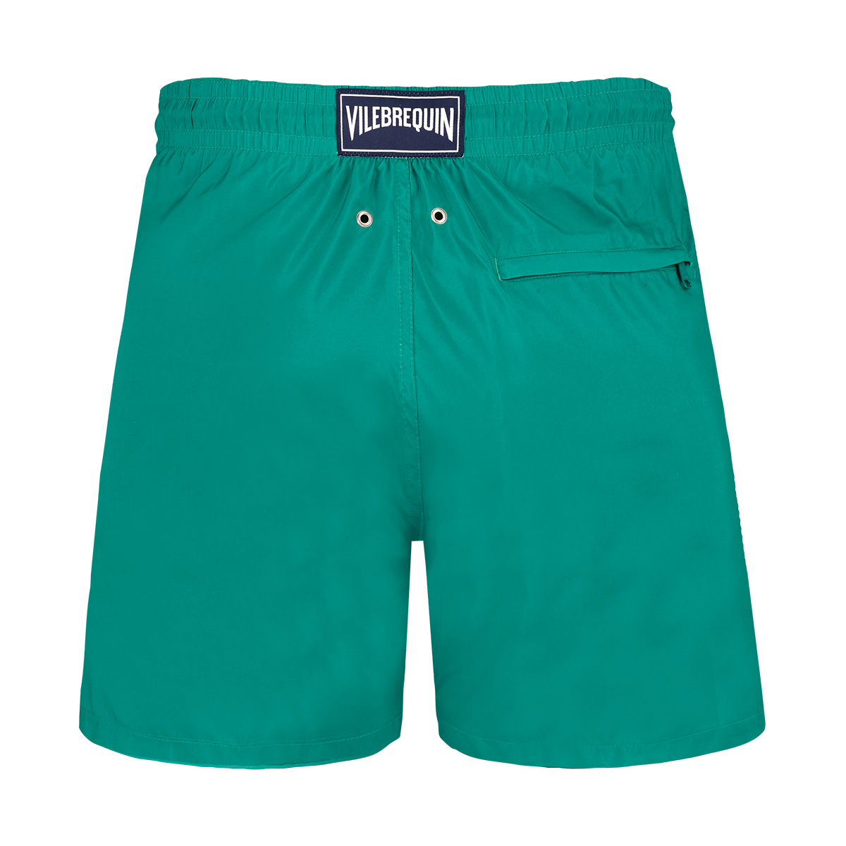 Bu çok hafif kumaşı ile dikkat çeken mayo, katlanarak arka cebine sığıyor ve üzerinde kauçuk Vilebrequin logosu yer alan bir keseye dönüşebiliyor.