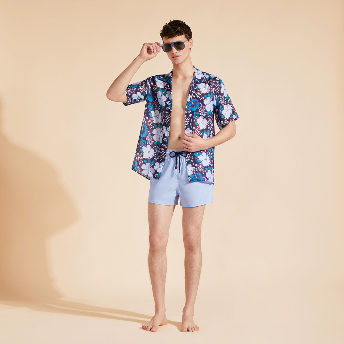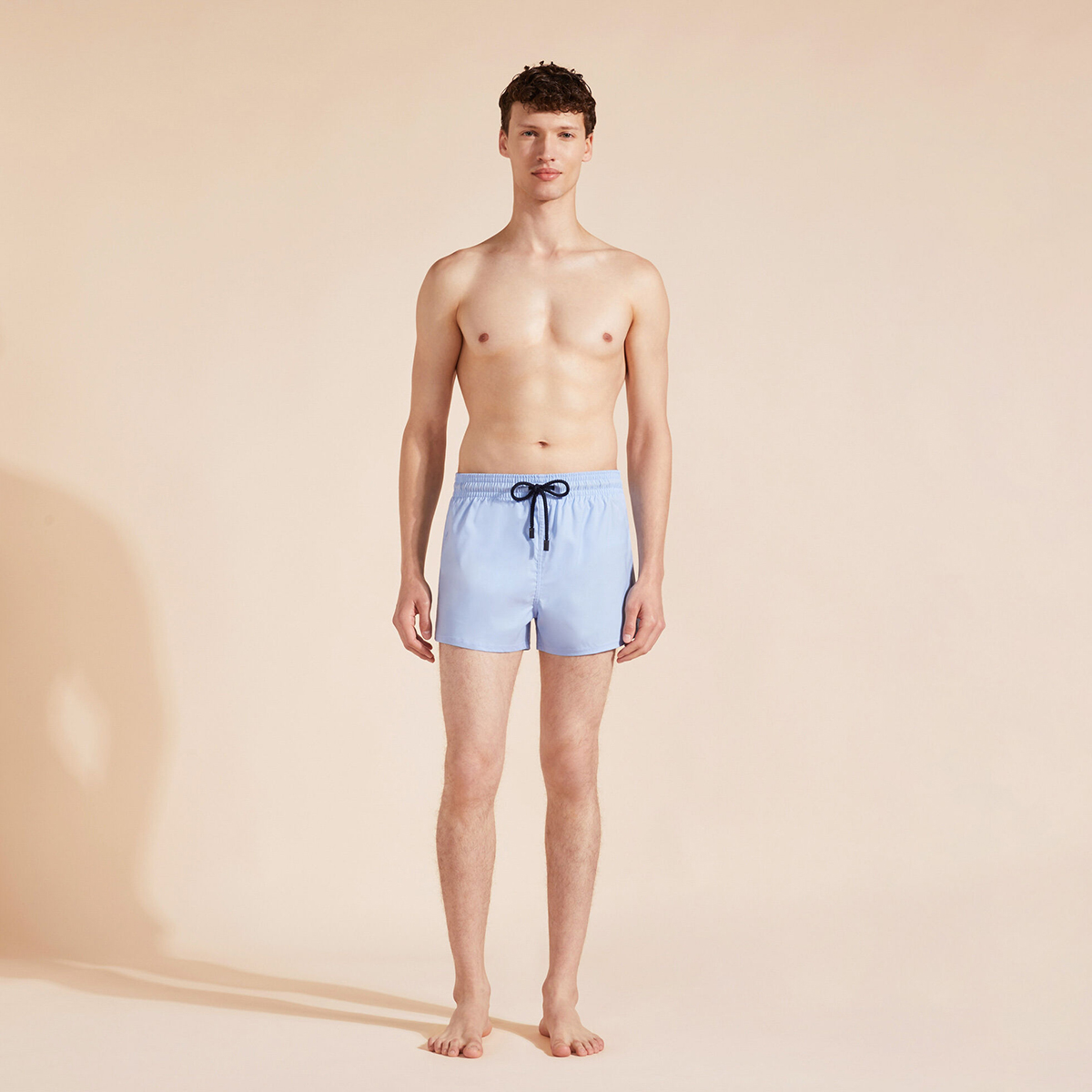 Erkek sade erkek yüzme şortuyla yüzmenin keyfini çıkarın. Maksimum hareket özgürlüğü için tasarlanan bu kısa ve esnek şortlar, elastik bel bandına ve Vilebrequin logo oyulmuş uçlu bir bağlama ipine sahiptir.