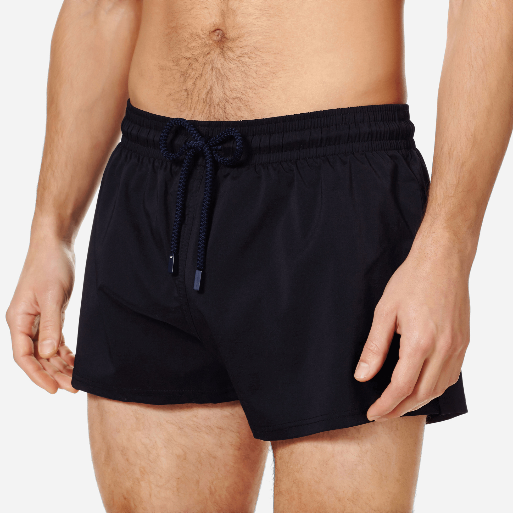 Erkek erkek yüzme şortuyla yüzmenin keyfini çıkarın. Maksimum hareket özgürlüğü için tasarlanan bu kısa ve esnek şortlar, elastik bel bandına ve Vilebrequin logo oyulmuş uçlu bir bağlama ipine sahiptir.