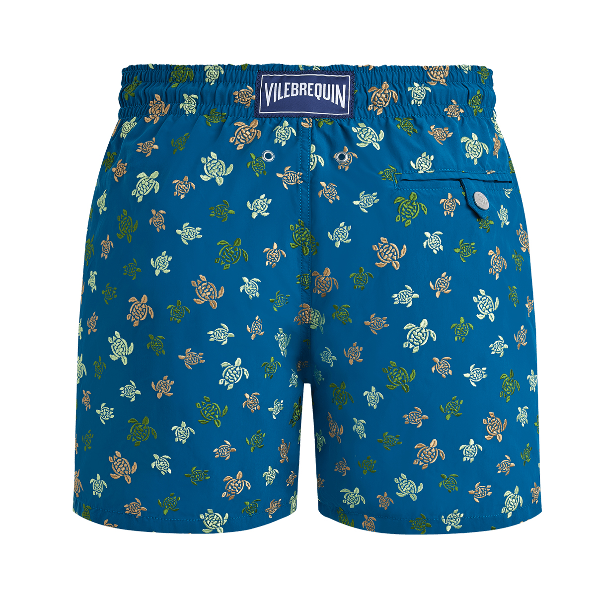 • Kişiselleştirilmiş yuvarlak kaplumbağa düğmeli arka cep.