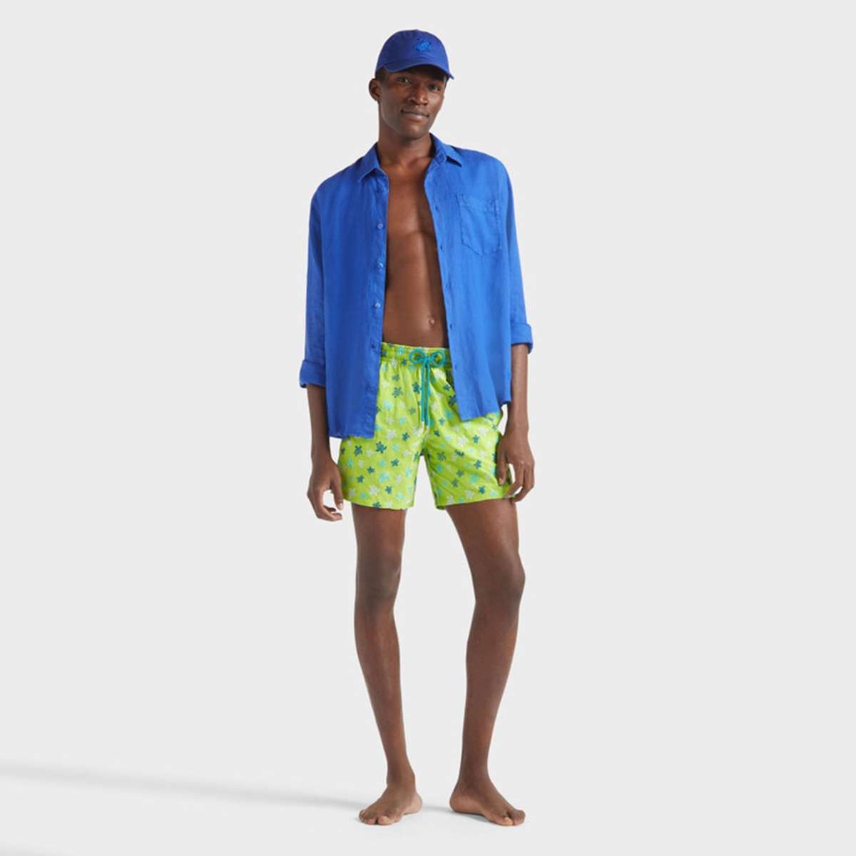 Sınırlı sayıda ve numaralandırılmış olarak üretilen MISTRAL erkek yüzme şortları, tamamen işlemeli tasarımı ve büzme ipindeki gümüş uçlar ile mükemmellik sevenler için tasarlandı.