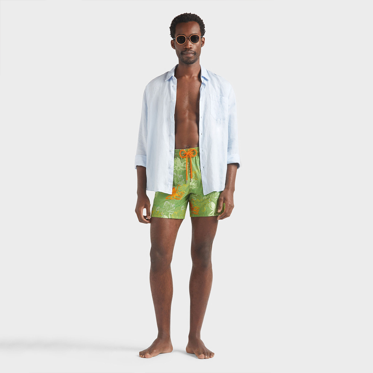 Sınırlı sayıda ve numaralandırılmış olarak üretilen MISTRAL erkek yüzme şortları, tamamen işlemeli tasarımı ve büzme ipindeki gümüş uçlar ile mükemmellik sevenler için tasarlandı.