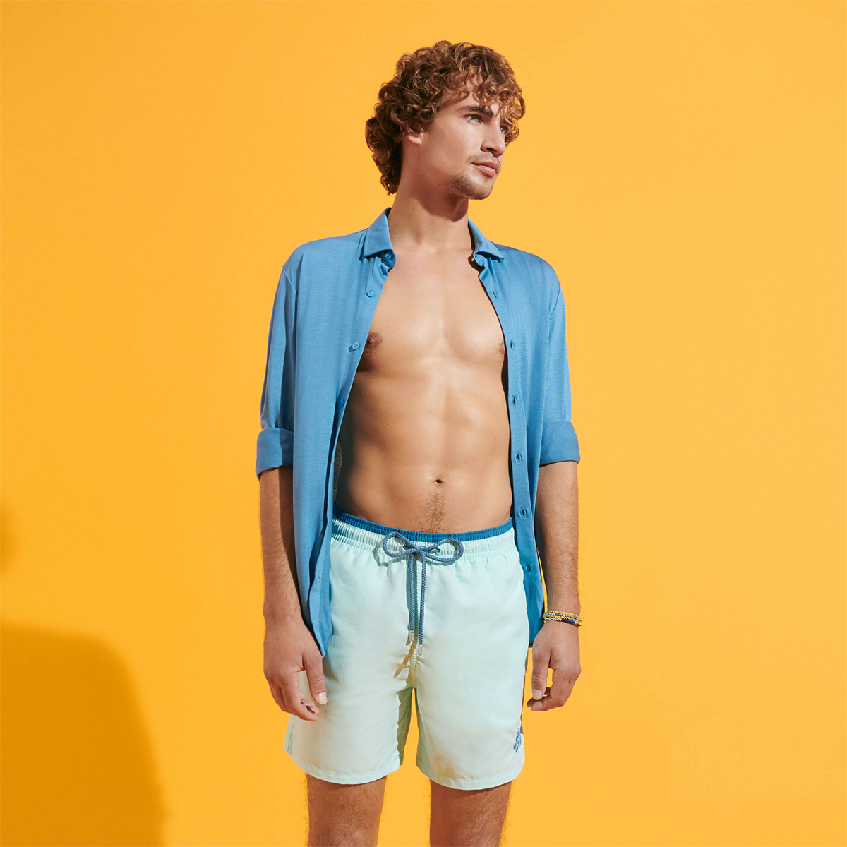 Cesur olun ve stil dolu bir yüzme için kontrastı seçin. Bel bandı ve kontrast renklerde büzme ipi ile bu Mokami erkek mayolarındaki iki tonlu efekt, zamansız tasarımları sıra dışı gösteriyor.