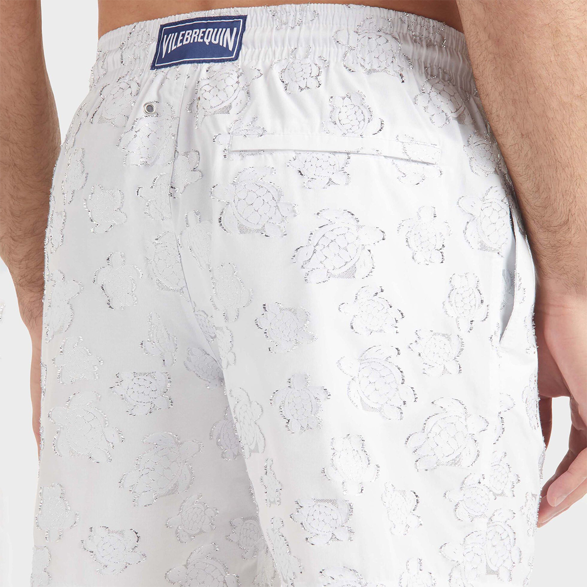 Broché işleme tekniği ile tasarlanan sofistike bir mayo Vilebrequin 2025 Disco koleksiyonuun en can alıcı parçalarından biridir. Bu teknik, lüks desenler oluşturmak için dekoratif ipliklerin kumaşın yüzeyine yerleştirilip sabitlendiği bir tekniktir.