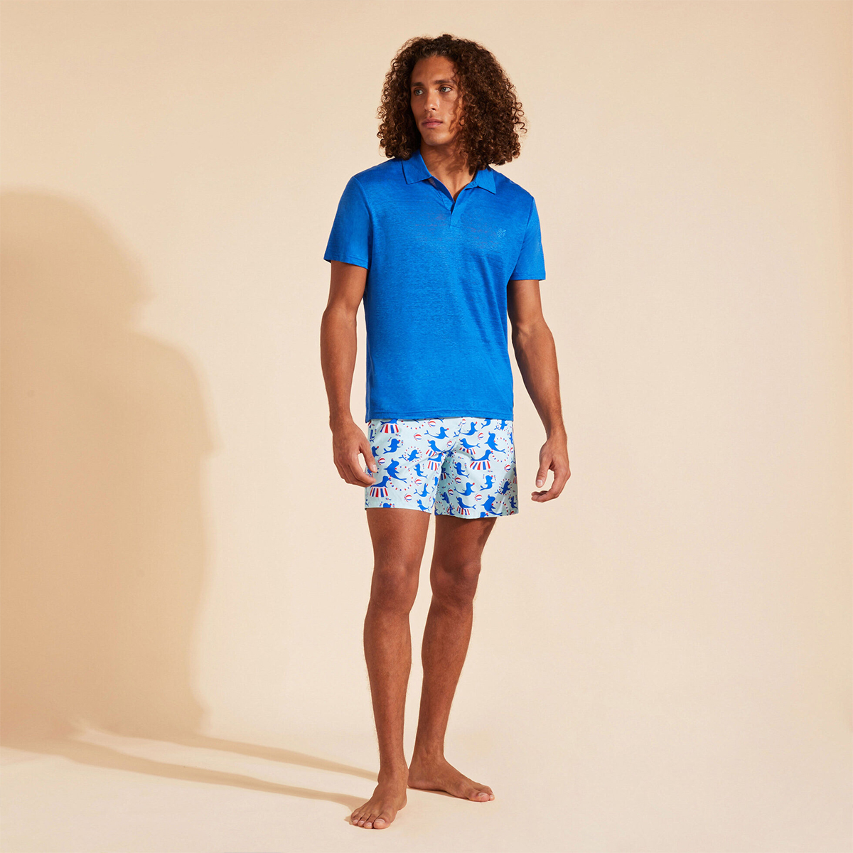 Vilebrequin’in ikonik, 1970’lerden gelen, Vilebrequin ruhuna sadık ve en sevilen stili. Yumuşak, çabuk kuruyan kumaştan yapılmış bu mayo, iki yan cebi ve arka cebi ile konfor sunuyor. Elastik bel kemerli mayo ve Zamac uçlu büzme ipi ile stil tamamlanıyor.