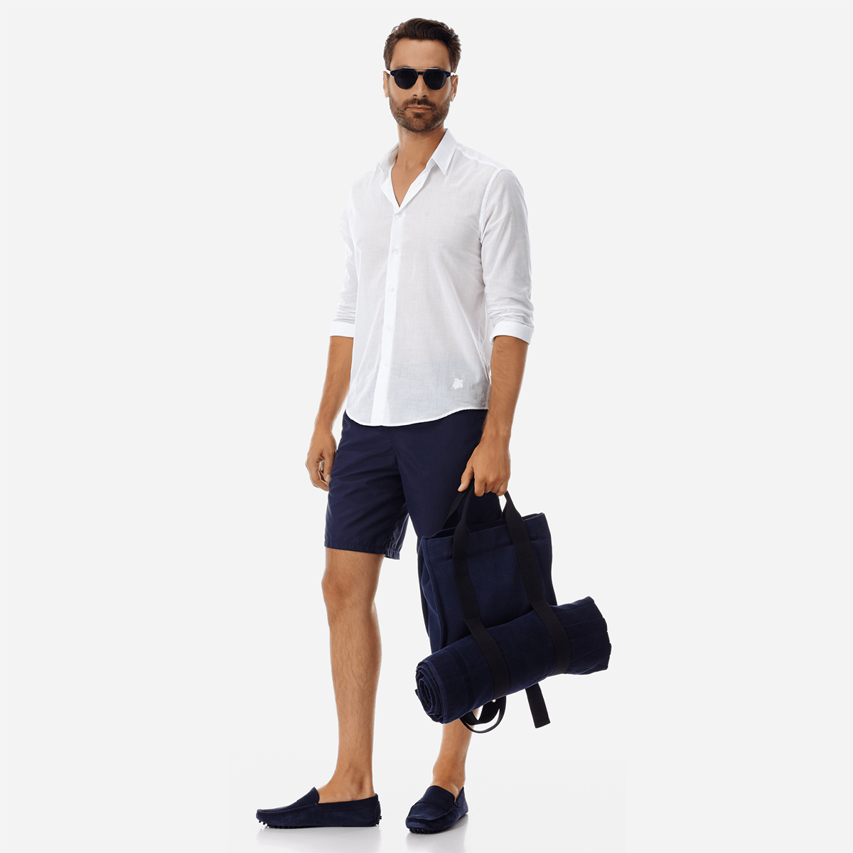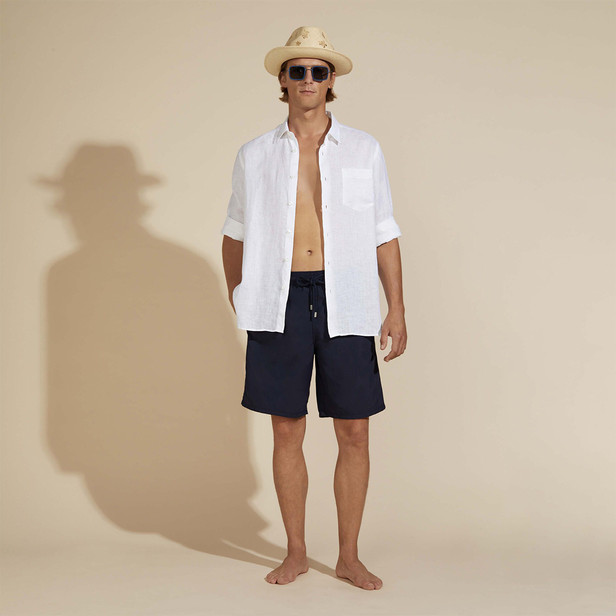 • İpli elastik bel bandı, bel arkasında ikonik Vilebrequin logo.
