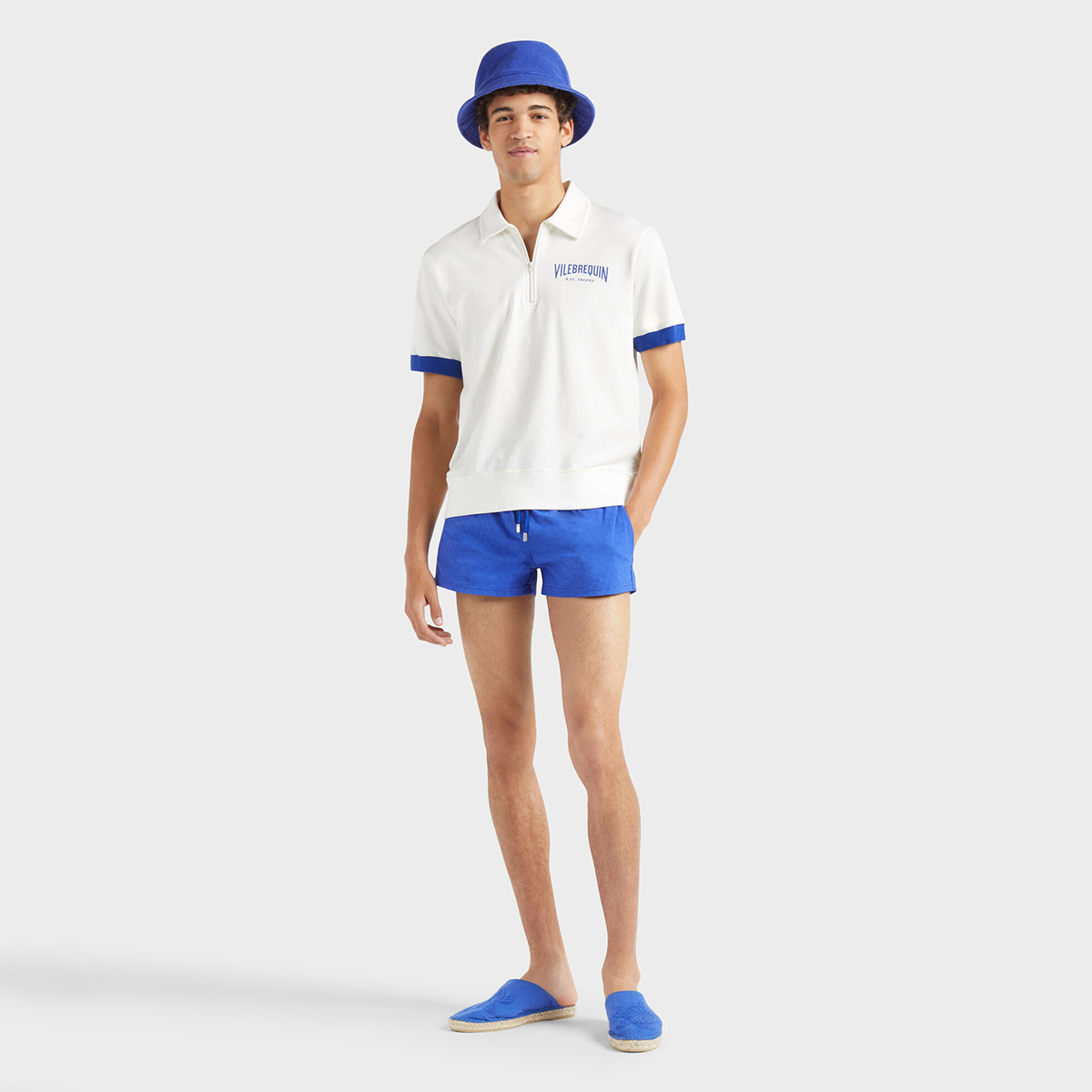St. Tropez stilinden ilham alan, vintage tarzda, kısa kollu erkek polo tişörtü. Rahatlık için hafif kumaştan üretilmiştir ve göğüs kısmında Vilebrequin logosu bulunmaktadır.