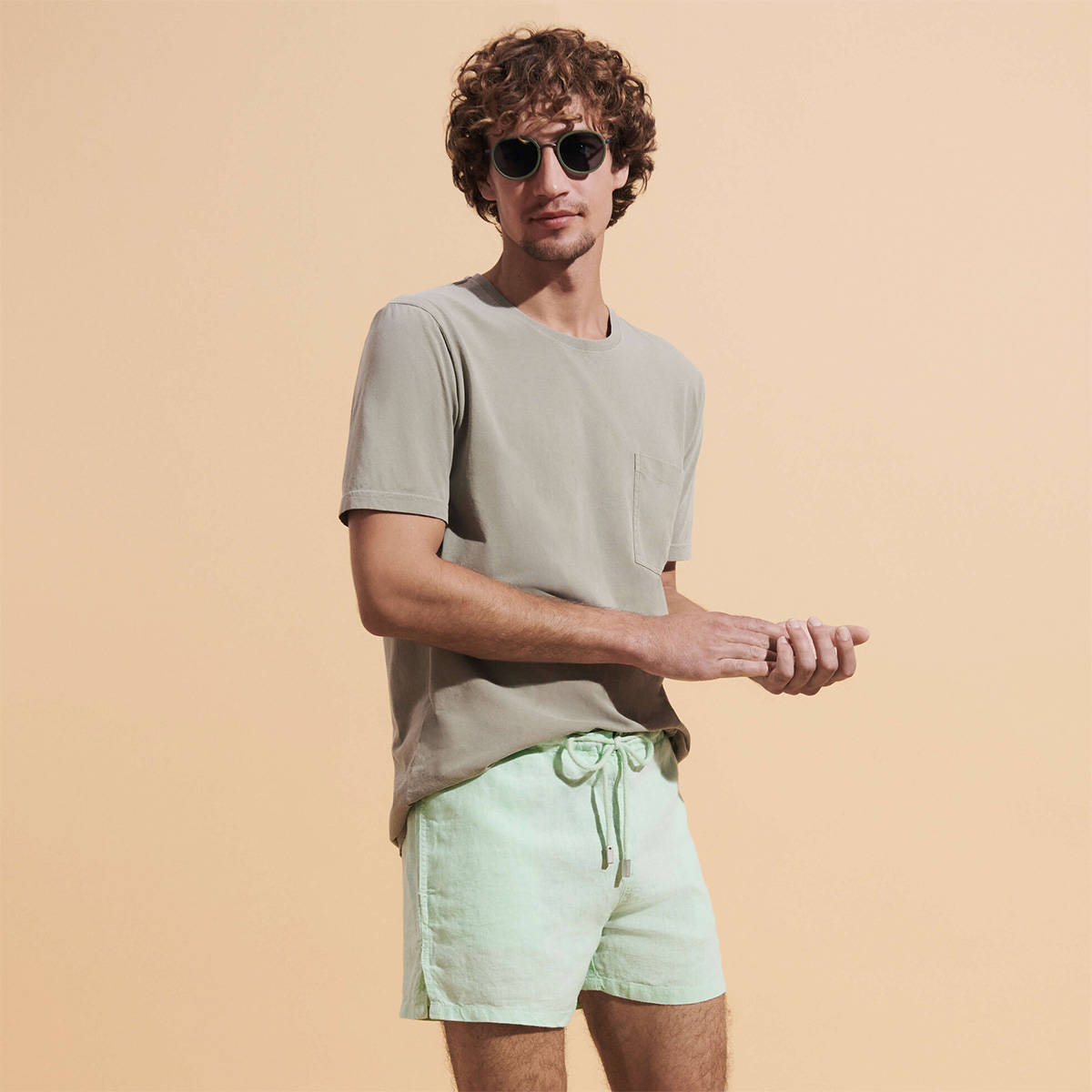 Yaz gardırobunun olmazsa olmazı, organik pamuktan yapılmış, TITUS kısa kollu erkek tişörtü, keten pantolonlar veya bir yüzme şortu ile kombine edildiğinde kusursuz bir görünüm sağlar.