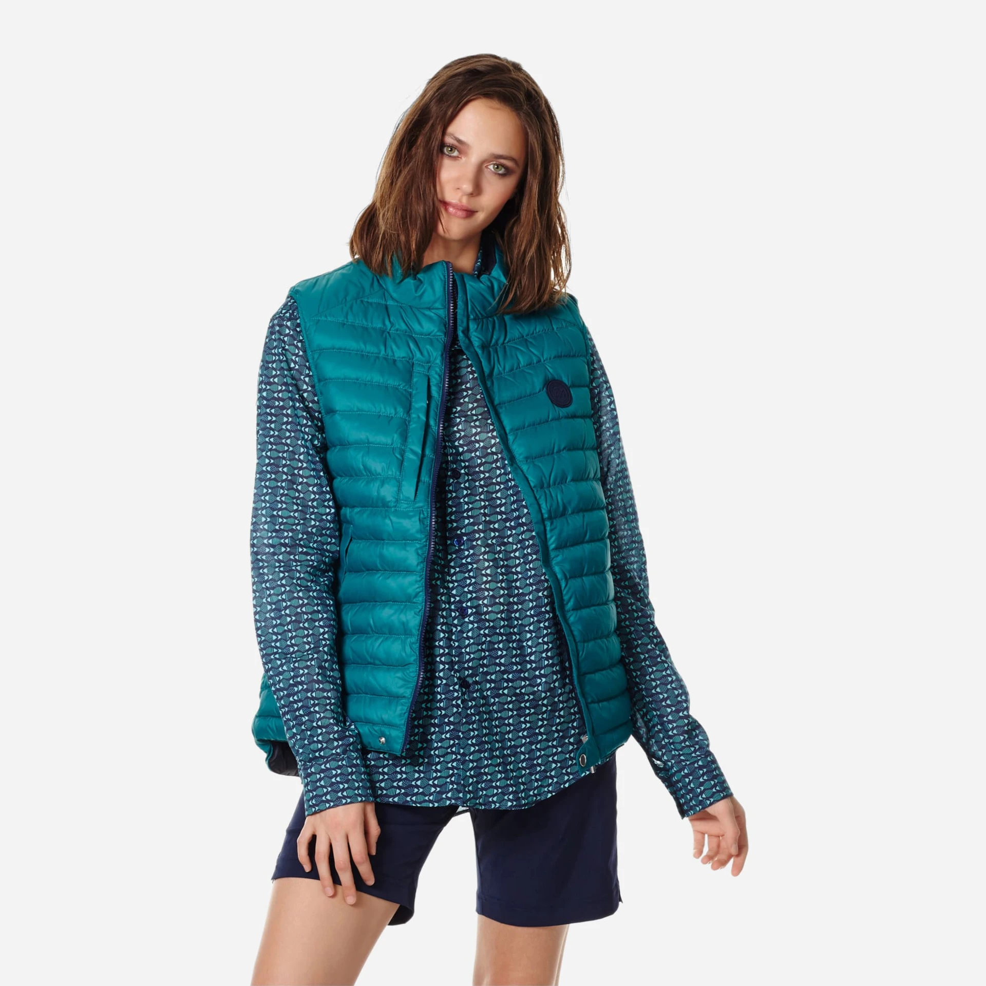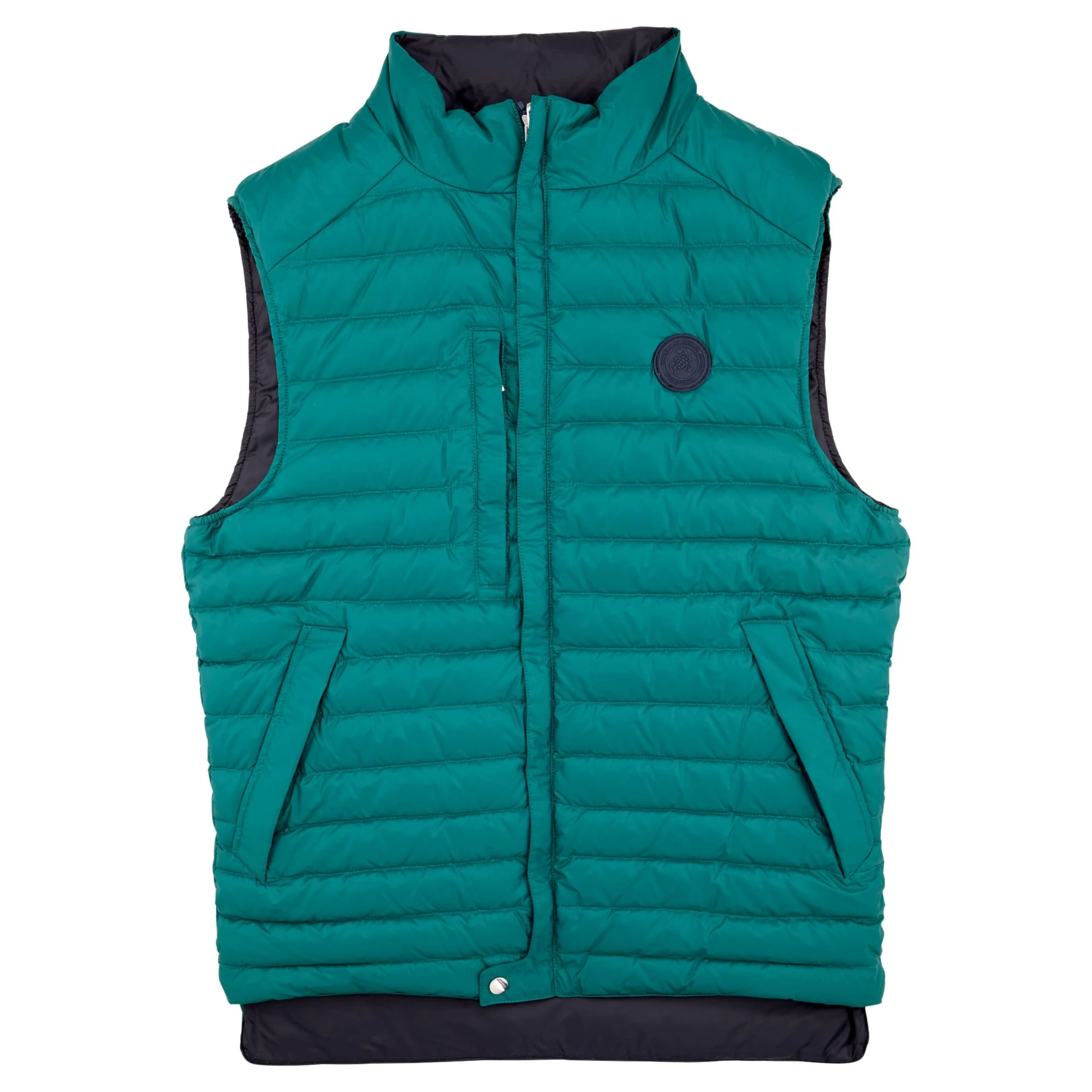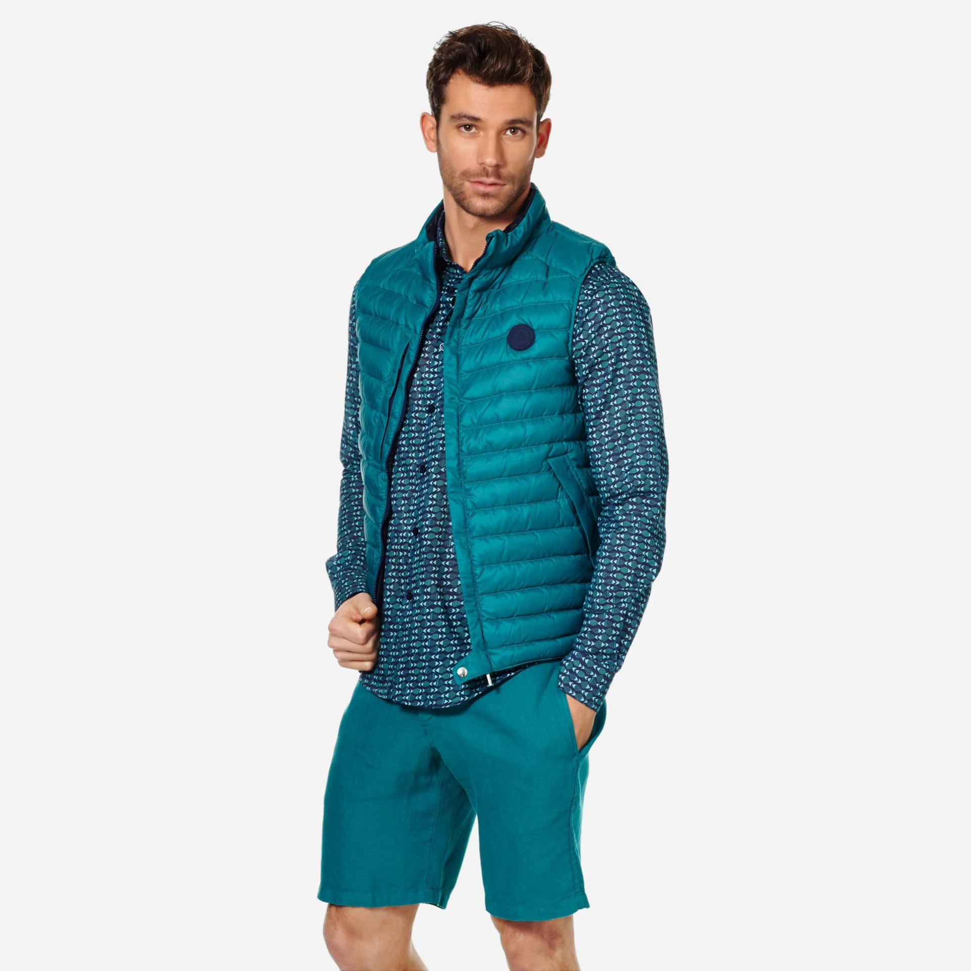 İki taraflı da kullanılabilen Vilebrequin Versant yelekler, serin bahar günlerinde ve yaz akşamlarında sizi ısıtıyor. Geri dönüştürülmüş kuş tüyleriyle doldurulmuş bu yelek, iki yan cep, fermuarlı bir göğüs cebi ve küçük bir saklama çantasına sahiptir.