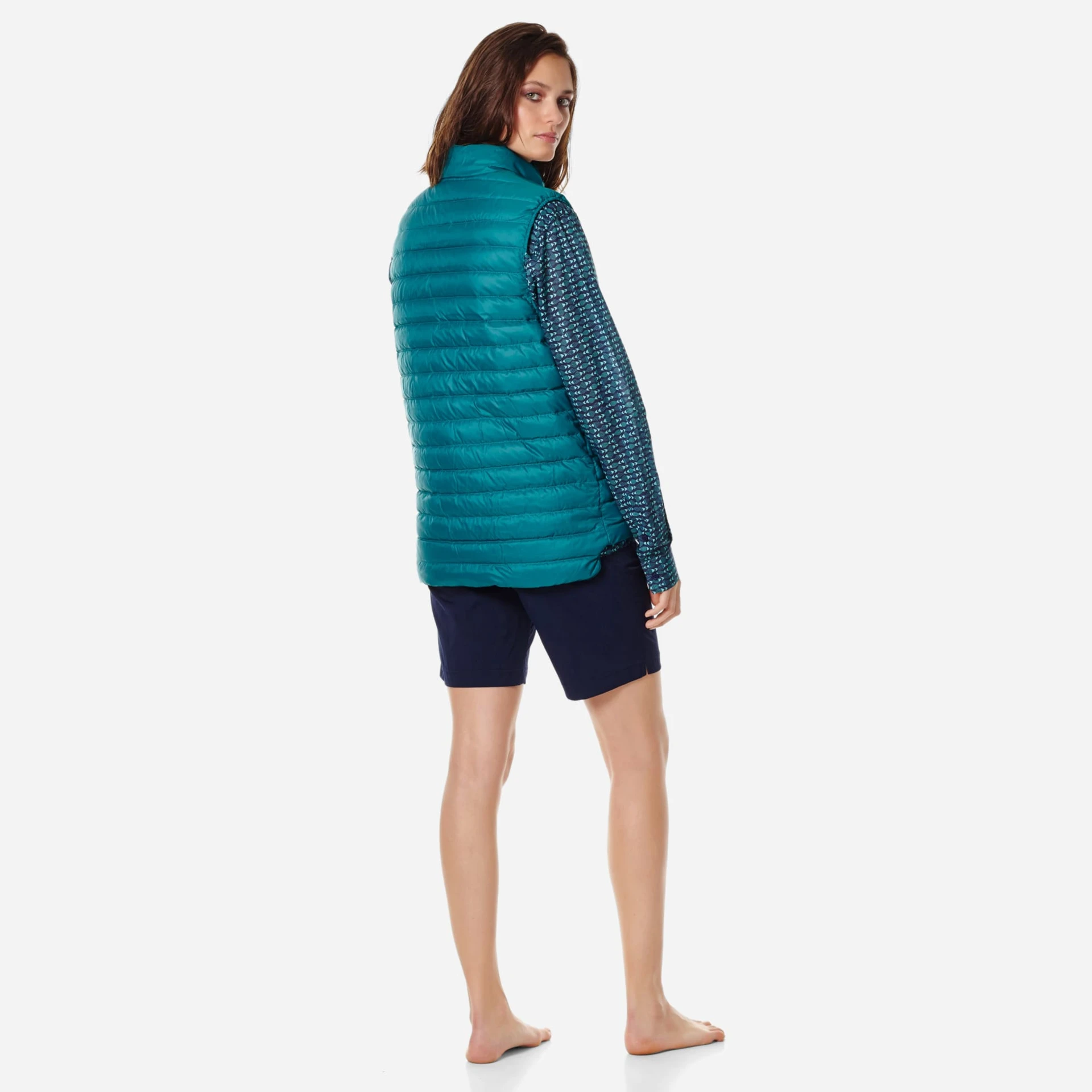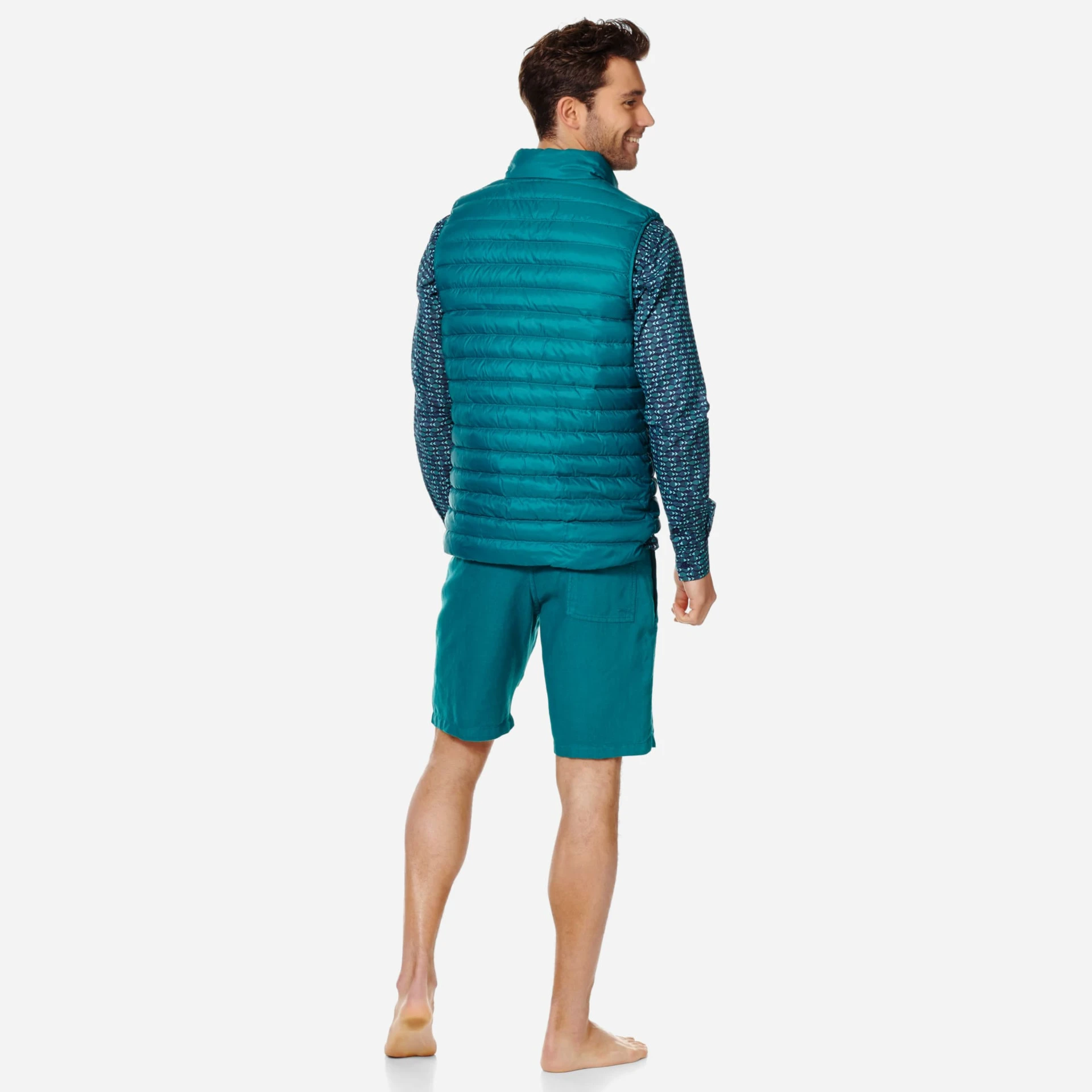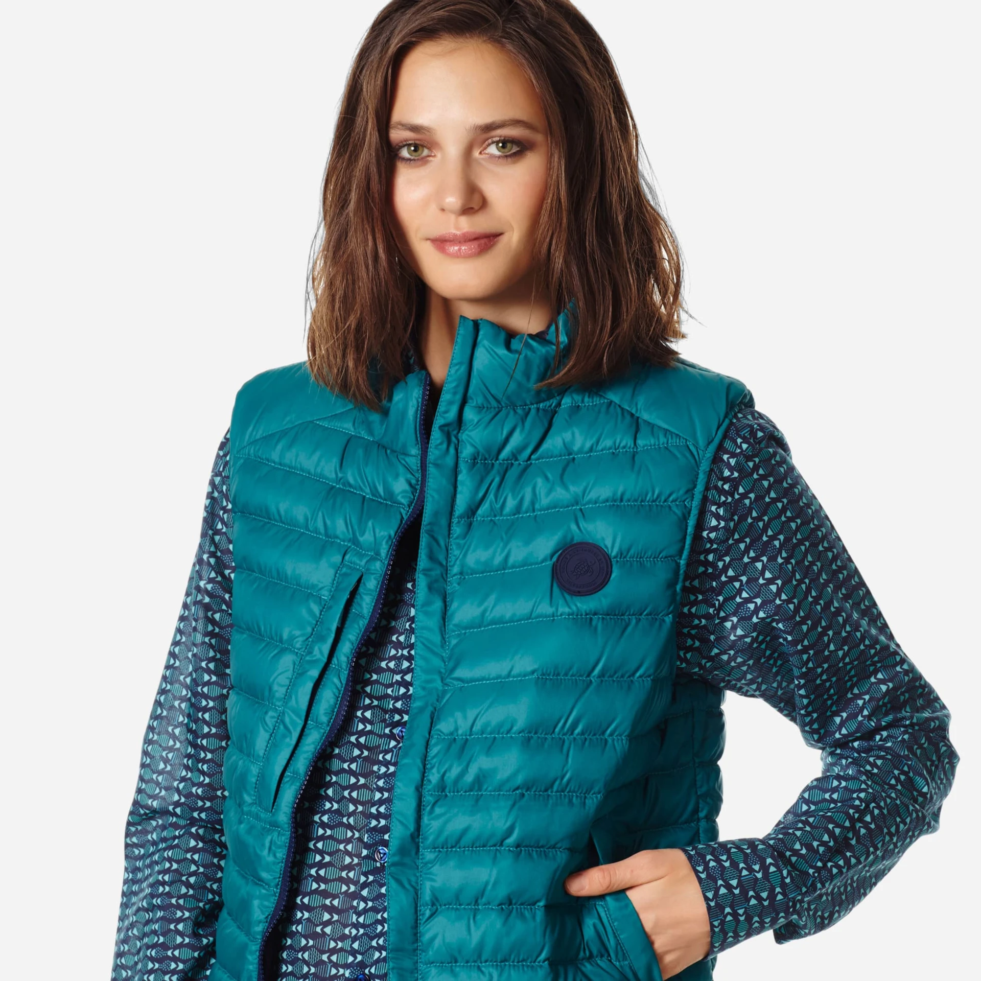 İki taraflı da kullanılabilen Vilebrequin Versant yelekler, serin bahar günlerinde ve yaz akşamlarında sizi ısıtıyor. Geri dönüştürülmüş kuş tüyleriyle doldurulmuş bu yelek, iki yan cep, fermuarlı bir göğüs cebi ve küçük bir saklama çantasına sahiptir.