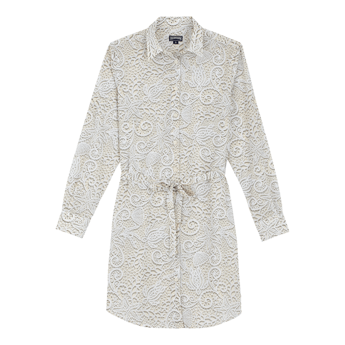 Florence Dentelles kadın gömlek elbise zarif deseni ile ön plana çıkıyor. Plajda ve günlük yaşamda rahatça kullanabileceğiniz bu keten gömlek bu yaz vazgeçilmeziniz olacak.
