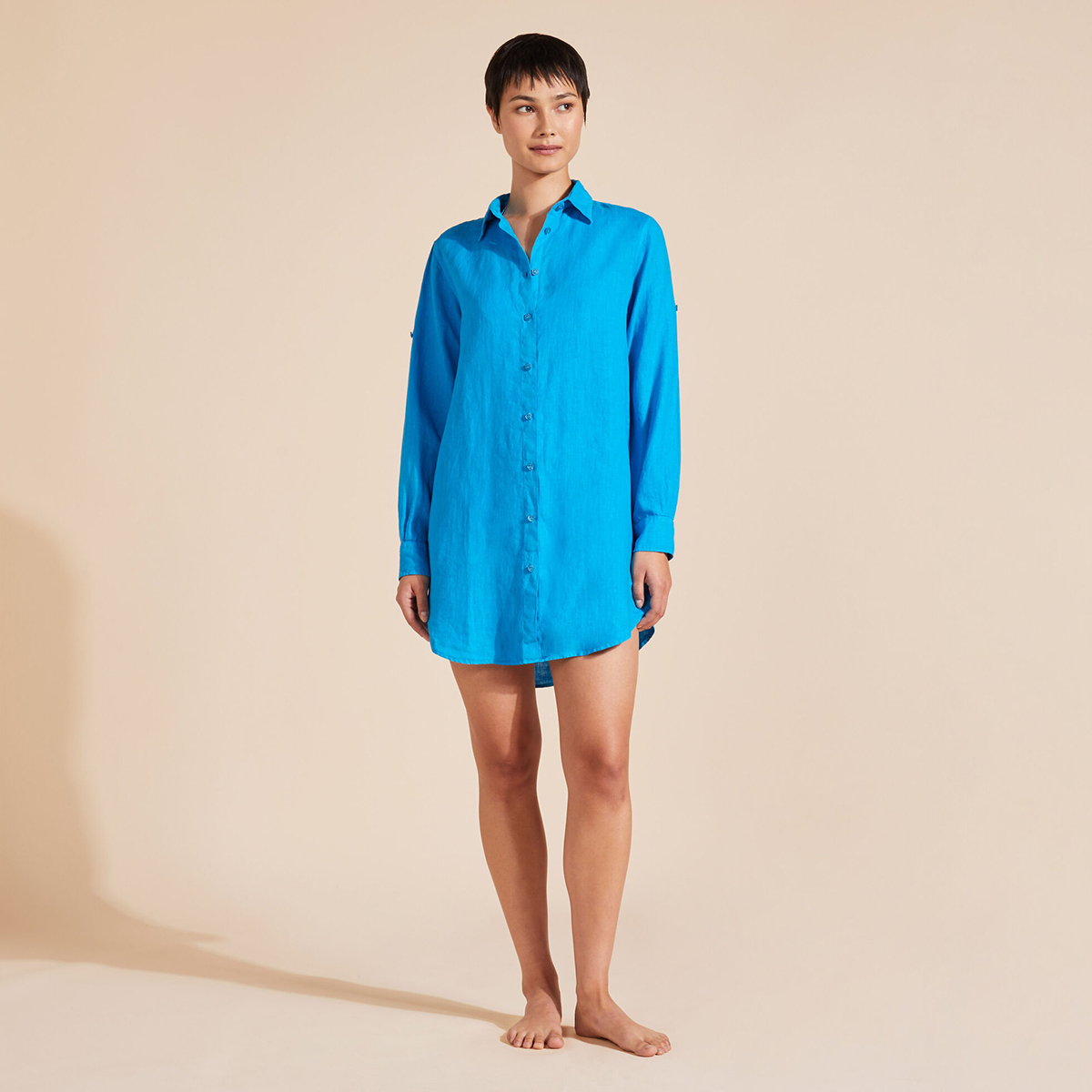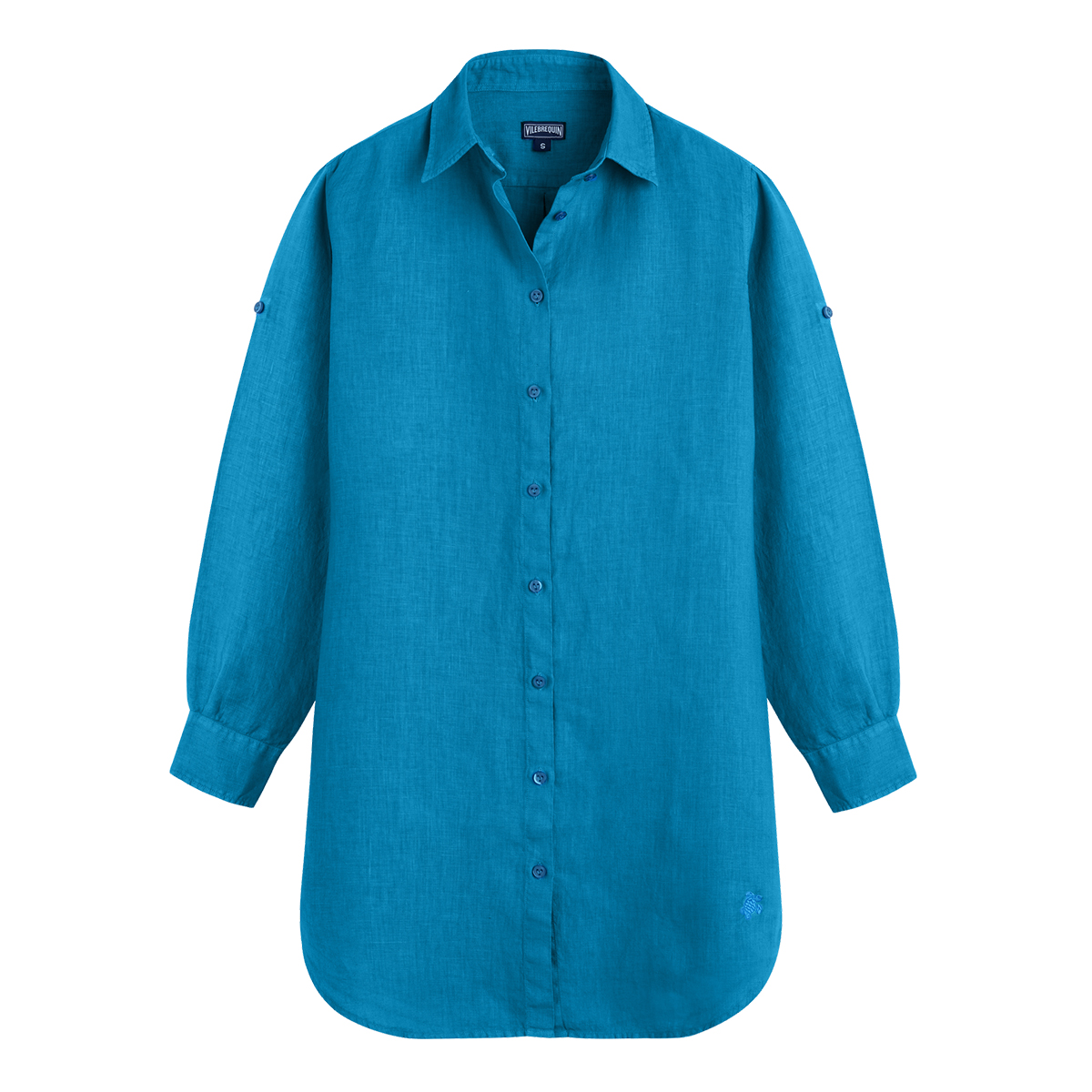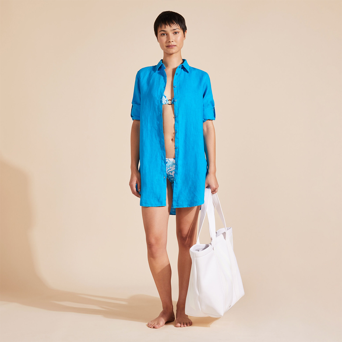 Vilebrequin’in olmazsa olmazı, Fragance kadın gömleği her gardrobun vazgeçilmezi. Bu klasik, uzun kollu, düz kesimli gömlek, doğal ve esnek ketenden yapılmıştır. Eteğinde aynı tonda ikonik Vilebrequin kaplumbağa işleme detayı yer alır.
