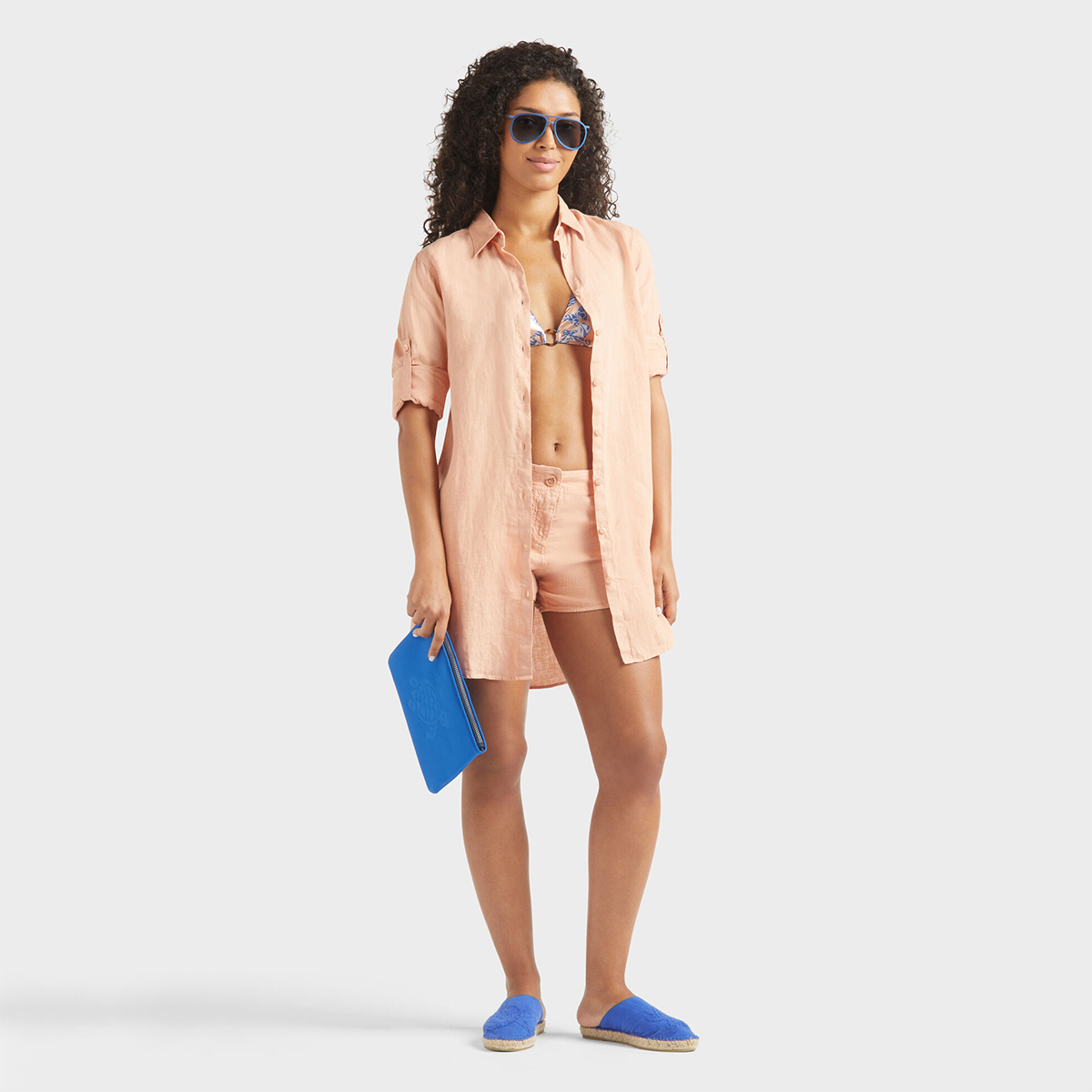 Vilebrequin’in olmazsa olmazı, Fragance kadın gömleği her gardrobun vazgeçilmezi. Bu klasik, uzun kollu, düz kesimli gömlek, doğal ve esnek ketenden yapılmıştır. Eteğinde aynı tonda ikonik Vilebrequin kaplumbağa işleme detayı yer alır.