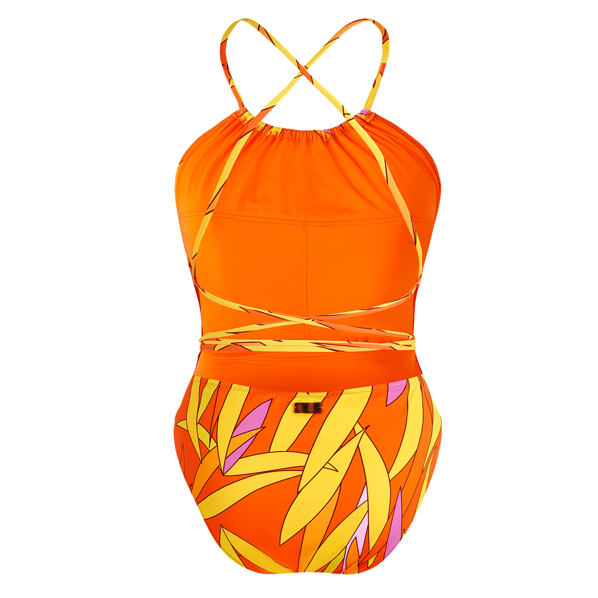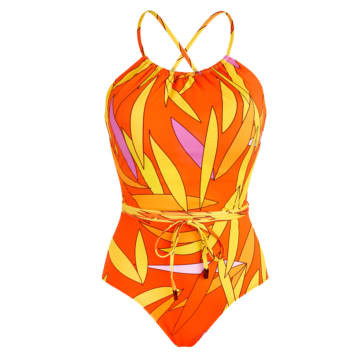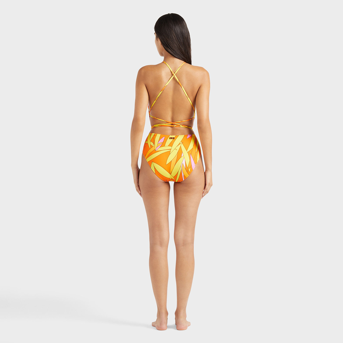 Bu canlı sırtı açık mayo, sırtında Vilebrequin uçlarıyla süslenmiş, çapraz geçen ve ön tarafta bağlanan askılarla tasarlanmıştır. Anne & Kız koleksiyonu 70’lerden esinlenen kadınlar için tek parça mayo Sırtı açık tasarım, 4 halkayla sabitlenen ve ön tarafta bağlanan çapraz askılarla mükemmel uyum sağlar Askı uçlarında kaplumbağa kabuğu baskısı Çıkarılabilir süngerler Tamamen astarlı Esnek jarse kmaş Model 177 cm boyunda ve S beden giymektedir
