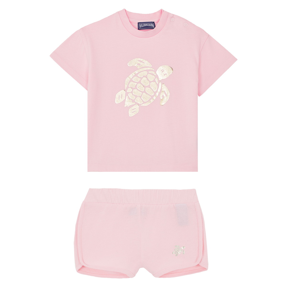 Göz alıcı kaplumbağa detayı ile dikkat çeken ve konfor için organik pamuktan üretilen kız bebek 2 parçalı setimiz ile minikleri Vilebrequin ile tanıştırıyoruz.