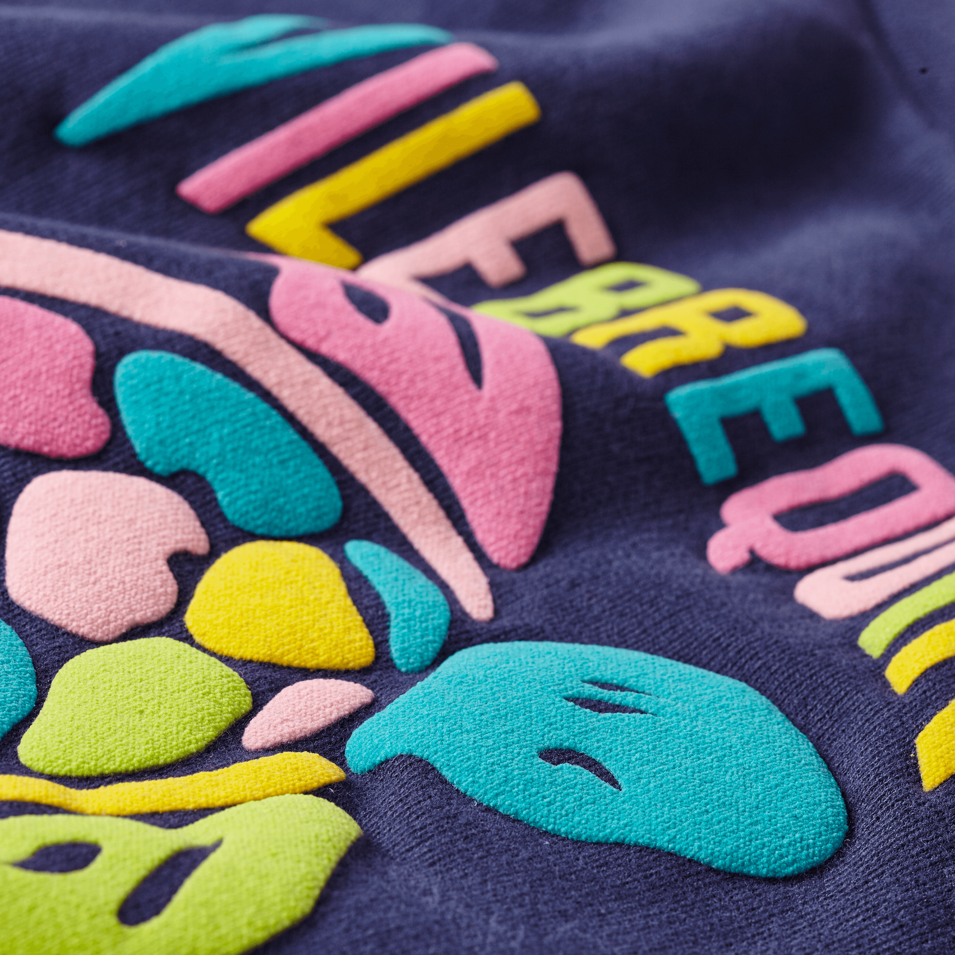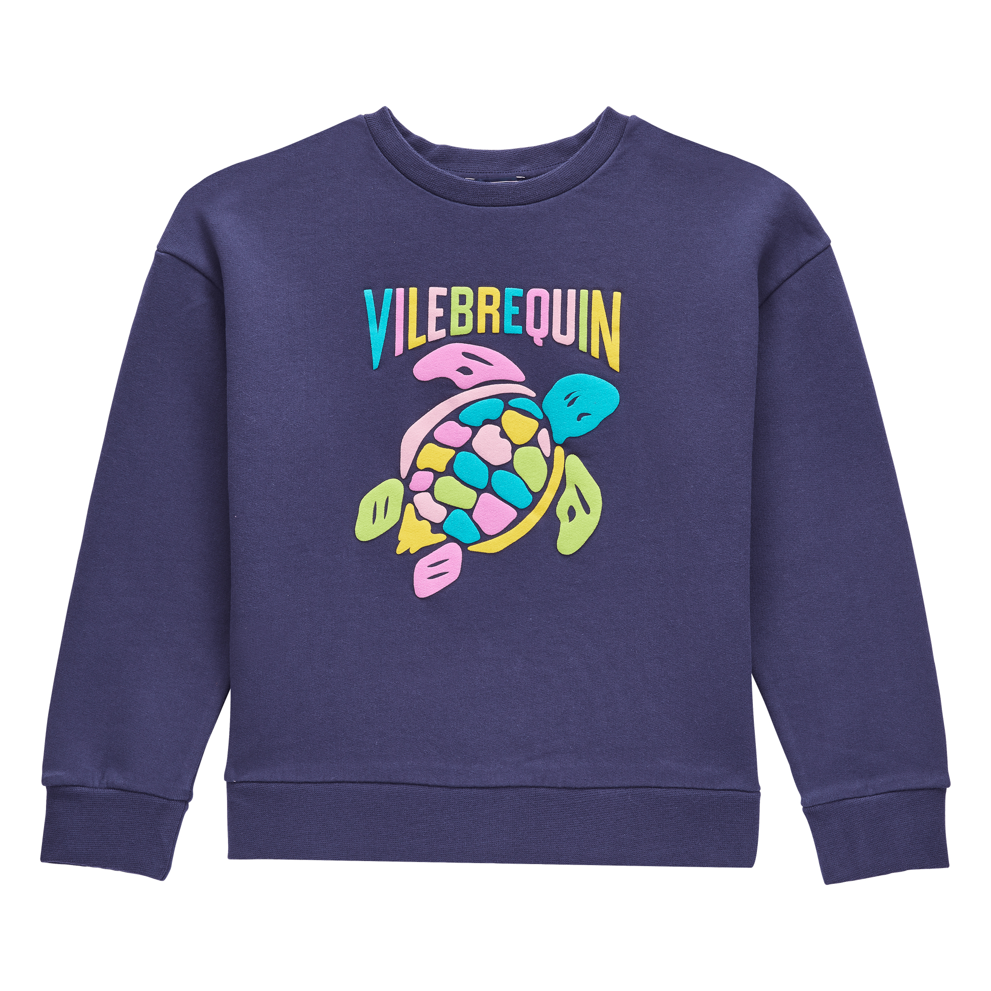 Kız çocukları için tasarlanan bu sweatshirt ön tarafındaki renkli kaplumbağa baskısı ve Vilebrequin logosu ile dikkat çekiyor.