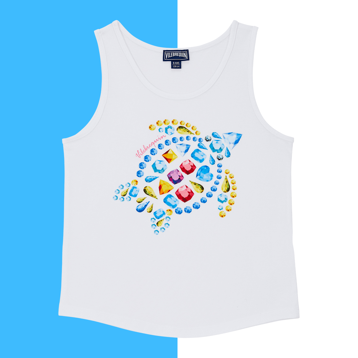 Organik pamuktan üretilen ve kullanışlı bir göğüs cebine sahip bu eğlenceli kız çocuk atletini göz alıcı bir kaplumbağa süslüyor.