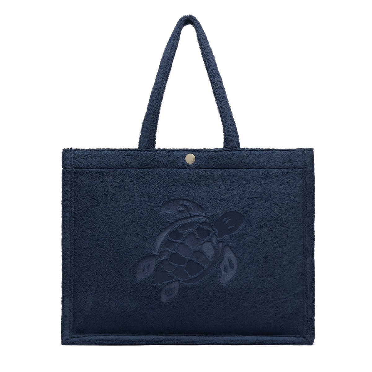 Yumuşak havlu kumaştan üretilmiş, ton sür tona Vilebrequin kaplumbağa nakışı ile süslenmiş pratik bir plaj çantası. Tüm temel eşyalarınızı sığdıracak kadar geniş ve çıtçıtlı kapanışa sahiptir. Ön yüzeyde işlenmiş kaplumbağa detayı Kaplumbağa işlemeli çıtçıtlı kapanış Çıtçıtlı büyük iç cep Ölçüler: Derinlik 8 cm x Yükseklik 40 cm x Genişlik 18 cm Unisex plaj çantası