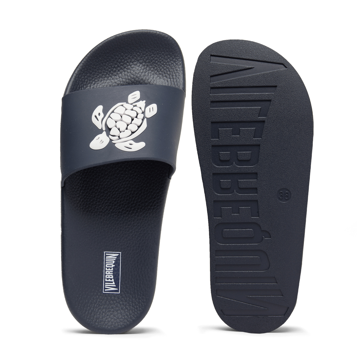 Plaj ve dış mekan kullanımı için uygun, pratik bir terlik. İkonik kaplumbağa motifiyle süslenmiştir ve tabanında Vilebrequin logosu bulunur.