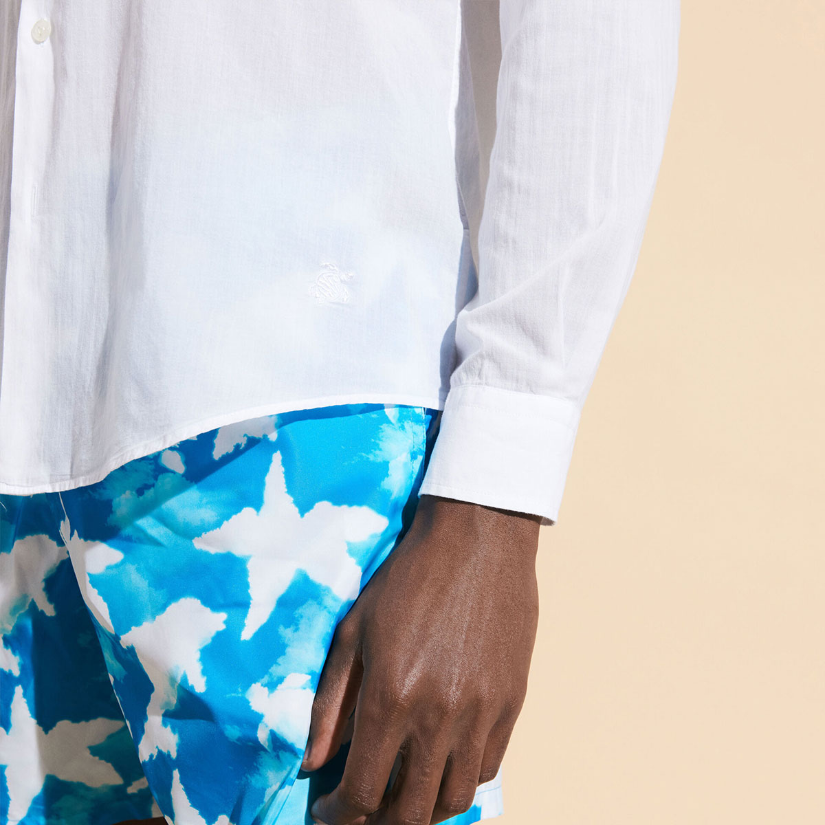 Yumuşak ve hafif pamuklu kumaşı ile Vilebrequin Caracal gömlek her stile uygundur. Zamansız bir stil ve mutlak konfor sağlayan bu uzun kollu gömlek önündeki aynı tonda işlemeli ikonik kaplumbağa logosuyla dikkat çekiyor.