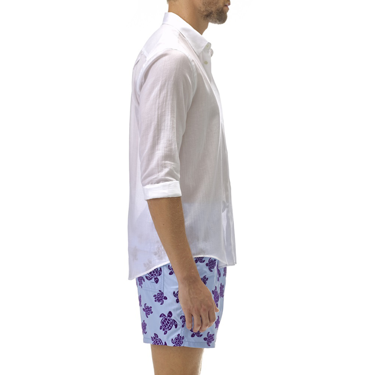 Yumuşak ve hafif pamuklu kumaşı ile Vilebrequin Caracal gömlek her stile uygundur. Zamansız bir stil ve mutlak konfor sağlayan bu uzun kollu gömlek önündeki aynı tonda işlemeli ikonik kaplumbağa logosuyla dikkat çekiyor.