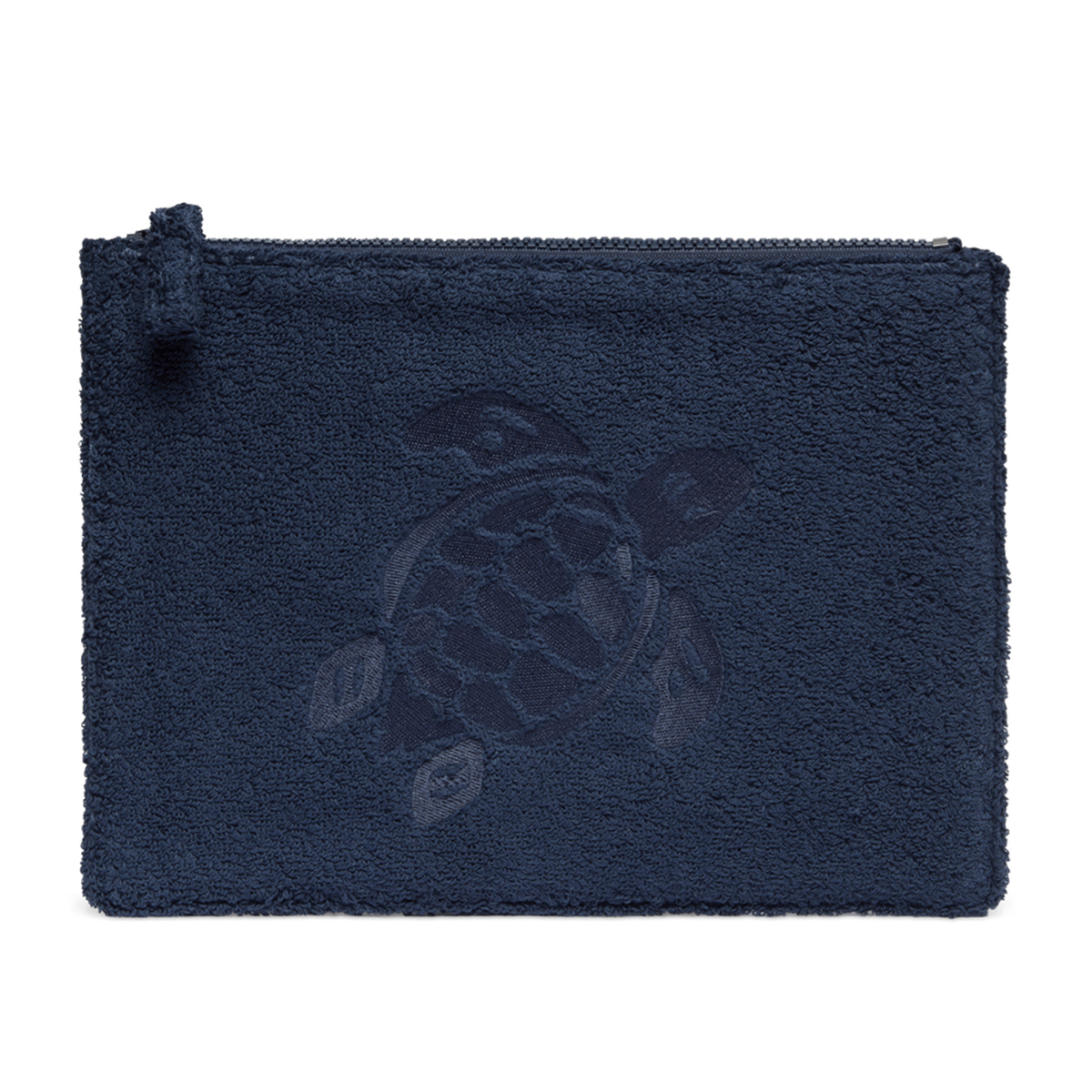 Fermuarlı havlu kumaş çanta, büyük ton-sür-ton işlenmiş kaplumbağa detayıyla – kadın ve erkek kullanımı için uygundur