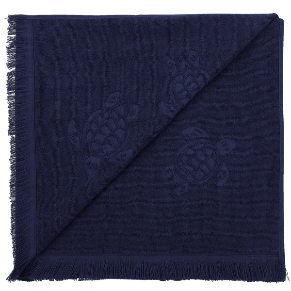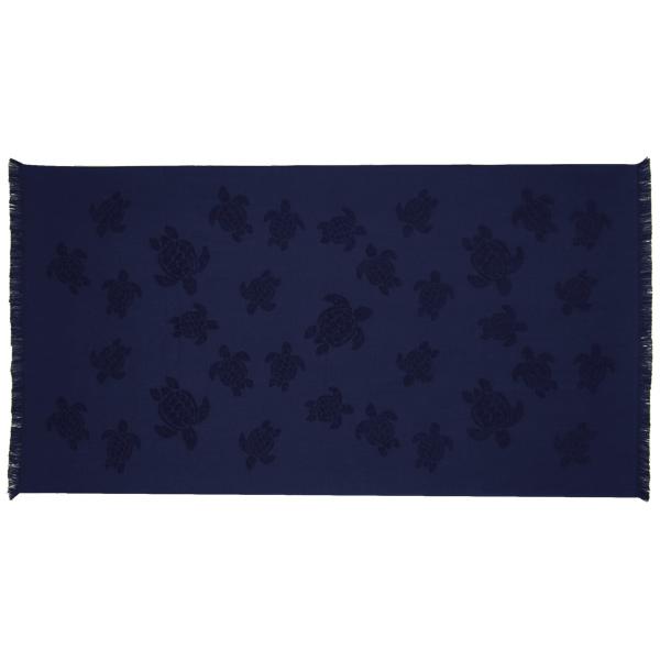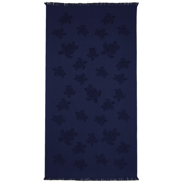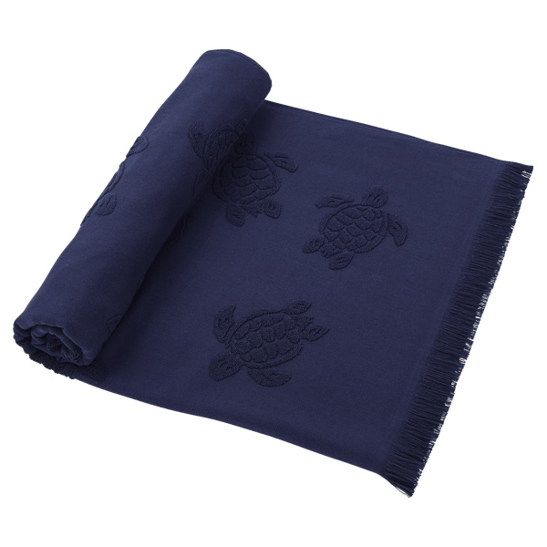 İkonik Vilebrequin kaplumbağaları, Santah unisex yetişkin havlularında yüzüyor. Bu zamansız pamuklu havlu yumuşak ve şıktır, aynı tonda dokuma jakar kaplumbağa desenlerine sahiptir.